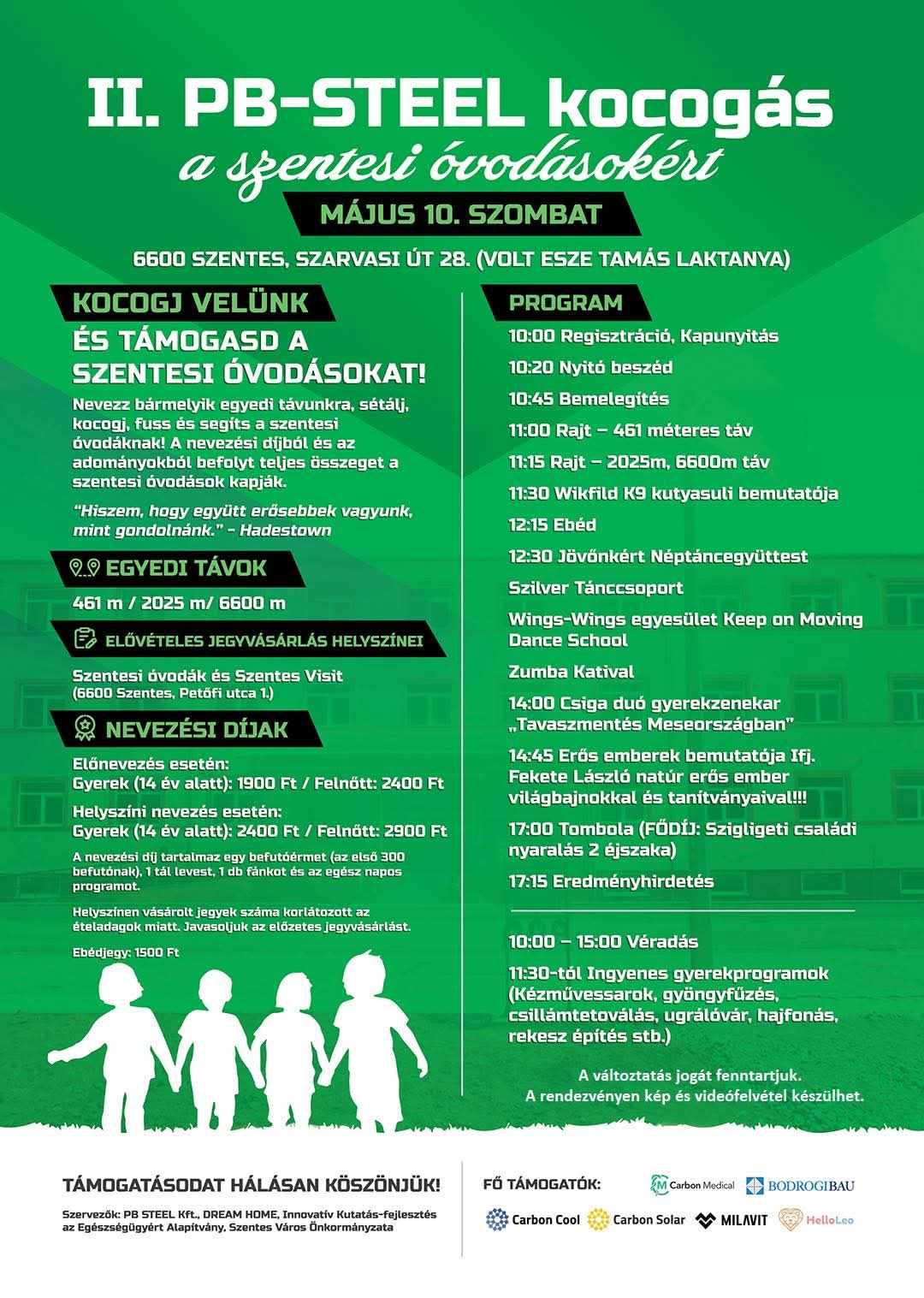 Május 10-én ismét jótékonysági futáson vehetünk részt a PB-Steel Kft. jóvoltából -melynek célja-, hogy a helyi óvodákat támogassák a futóversenyre befolyt nevezési összegből.