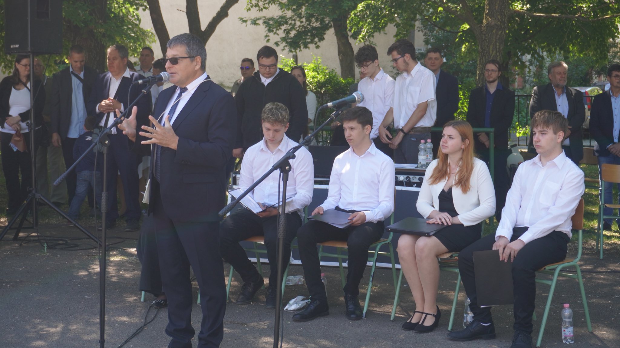 Virágdíszbe öltözött az iskola a május 10-ei ballagási ünnepségünkön az 51 végzős diák tiszteletére, és a 13.A (osztályfőnök Ágoston Csaba), illetve a 13.B (osztályfőnök Gila Olga) osztályok tanulóitól irodalmi műsor is búcsúzott. Keresztúri-Tóth Eszter magabiztos konferálása mellett Bakos Dominik Reményik Sándor Akarom című versét szavalta el, Lantos István és Szabics Dániel pedig a a ballagók öt évének emlékezetes pillanatait idézte fel. Kovács Attila igazgató úr ünnepi beszéde után a díjátadás következett, majd a 12. osztályosok átvették az iskola zászlaját a 13. évfolyamosoktól.