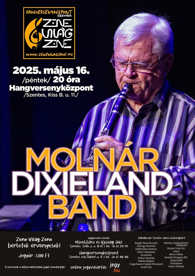 🔖 jegyek: https://www.jegy.hu/program/molnar-dixieland-band-171817 ONLINE, valamint a Hangversenyközpontban és a Művelődési Központban kaphatók.