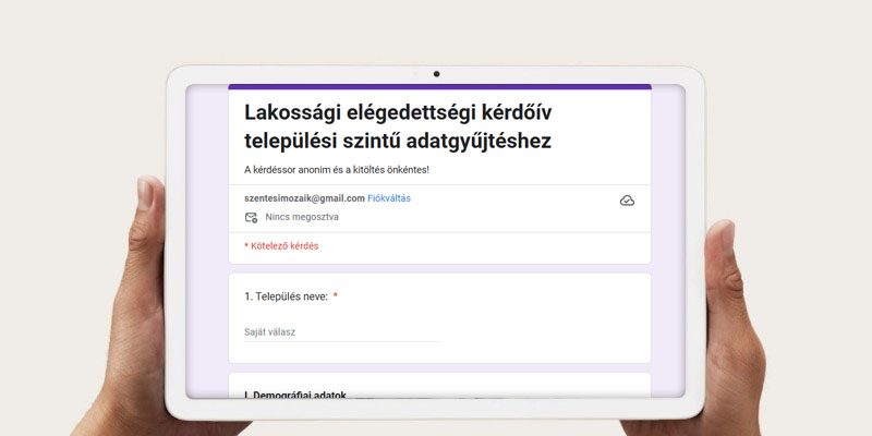 A lakossági kérdőív kitöltése egyszerű és kevés időt vesz igénybe. A kérdőív online tölthető ki és küldhető be, a válaszok pedig automatikusan feldolgozásra és kiértékelésre kerülnek, nagy segítséget nyújtva a vármegyei program megalapozásában.