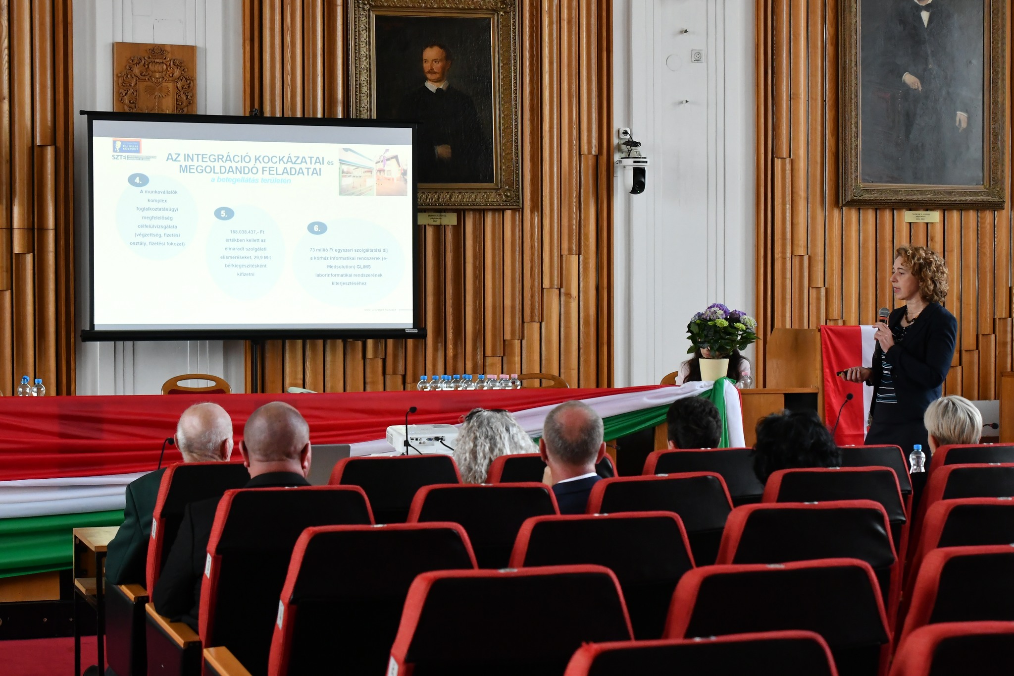 Az egyetemi integráció nemcsak jogszabályi kötelezettség volt, hanem jelentős szerkezeti és humán erőforrásbeli átalakításokat is hozott. Dr. Sümegi Viktória hangsúlyozta: „Szinte nem volt olyan osztály, ahol a humán kapacitás kielégítő lett volna.” Az orvosi és szakdolgozói létszámhiány súlyos kihívást jelentett: az előírt minimumfeltételekhez képest 47 orvos és 71 szakdolgozó hiányzott a rendszerből. A hiányzó bérkiegészítések rendezése és az informatikai rendszer 73 millió forintos fejlesztése elengedhetetlen volt a működés stabilizálásához. Az intézmény adósságállománya ekkor közel 1 milliárd forintra rúgott.
