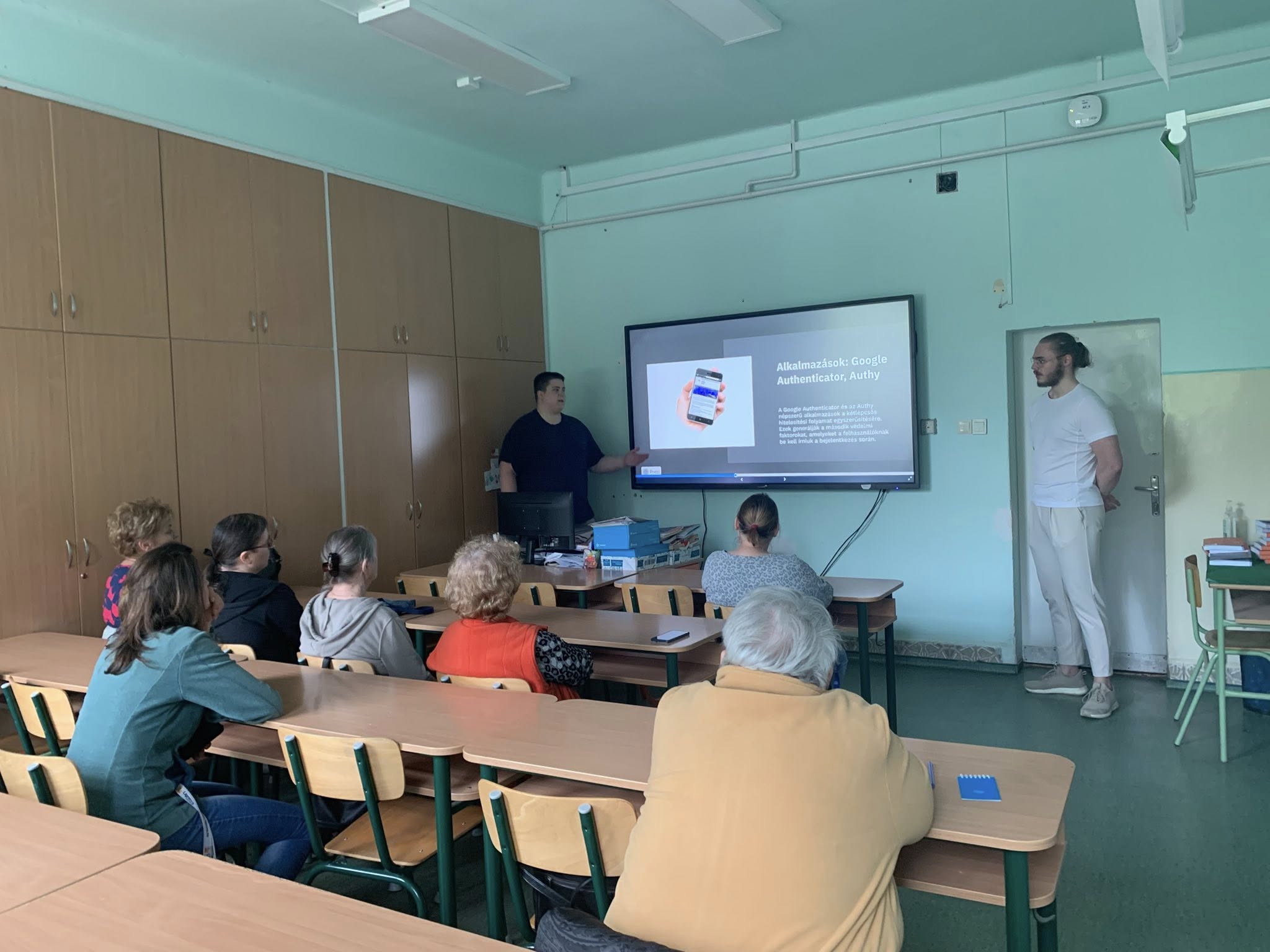 Az ingyenes előadás-sorozat második részében két olyan végzős szoftverfejlesztő és -tesztelő diákunk vállalt főszerepet, akik öt éven keresztül kitűnő tanulmányi eredményt értek el: Jani Patrik és Tamáskovits Gyula a biztonságos e-mail használatról, az online ügyintézésről, a kétfaktoros azonosításról tartott prezentációt szüleik-nagyszüleik nemzedékének. Köszönjük önzetlen segítségüket, és sikeres szakmai vizsgát kívánunk mindkettejüknek! Záró előadás május 26-án, hétfőn!