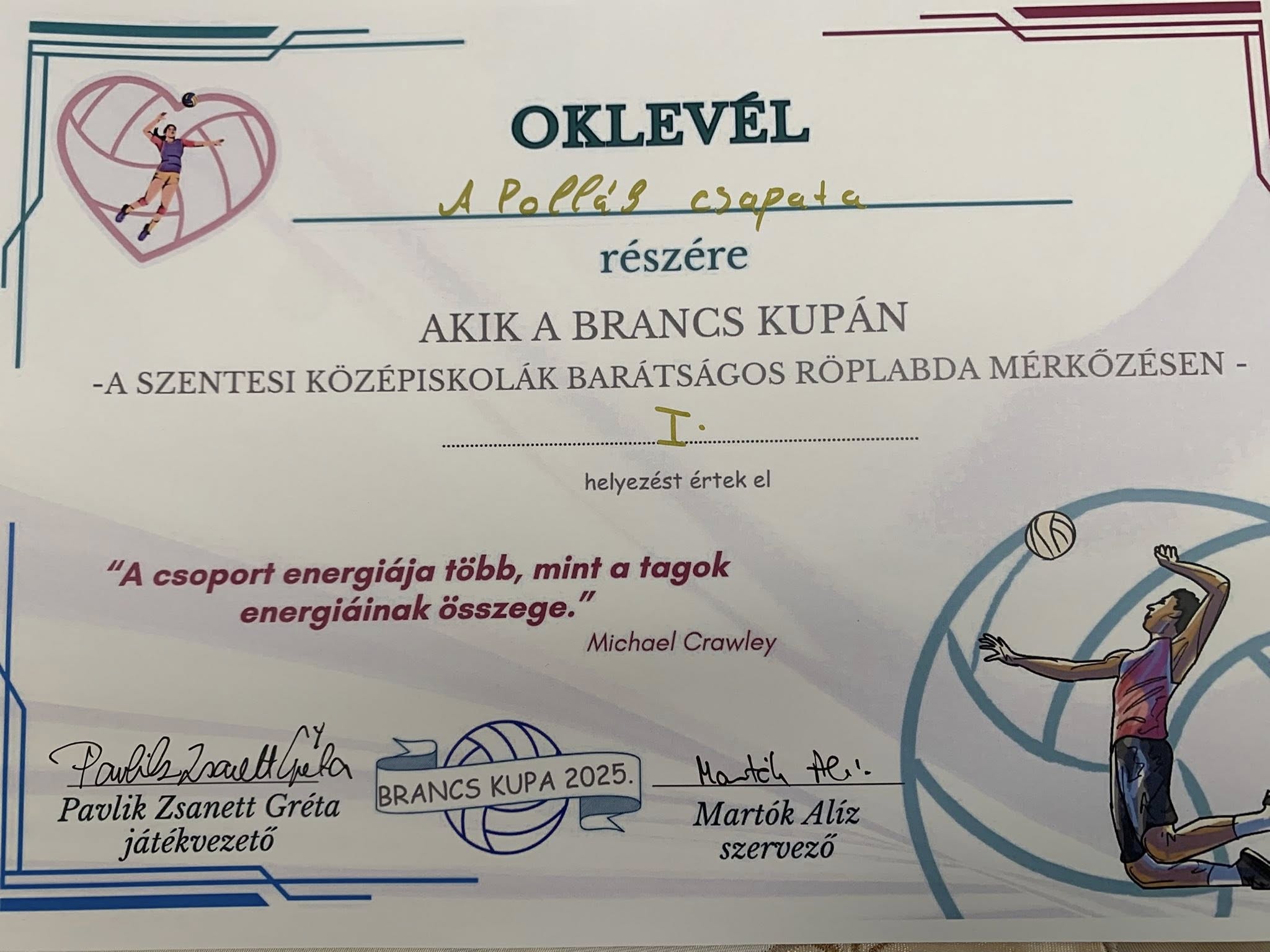 Iskolánk csapata nagyszerű játékkal megnyerte a város középiskolái között zajló barátságos röplabda-tornát. A győztes csapat tagjai: Nagy Noel, Sztojka Milán, Huszár Imre, Urbán Csaba, Kis Lajos Noel, Héri Dóra, Tóth Vendel, Zsurka Dávid, Czombos Szebasztián. Felkészítők: Rajosné Kozma Katalin, Mácsai László. Gratulálunk mindenkinek, köszönjük, hogy ismét büszkék lehetünk rátok! ❤️