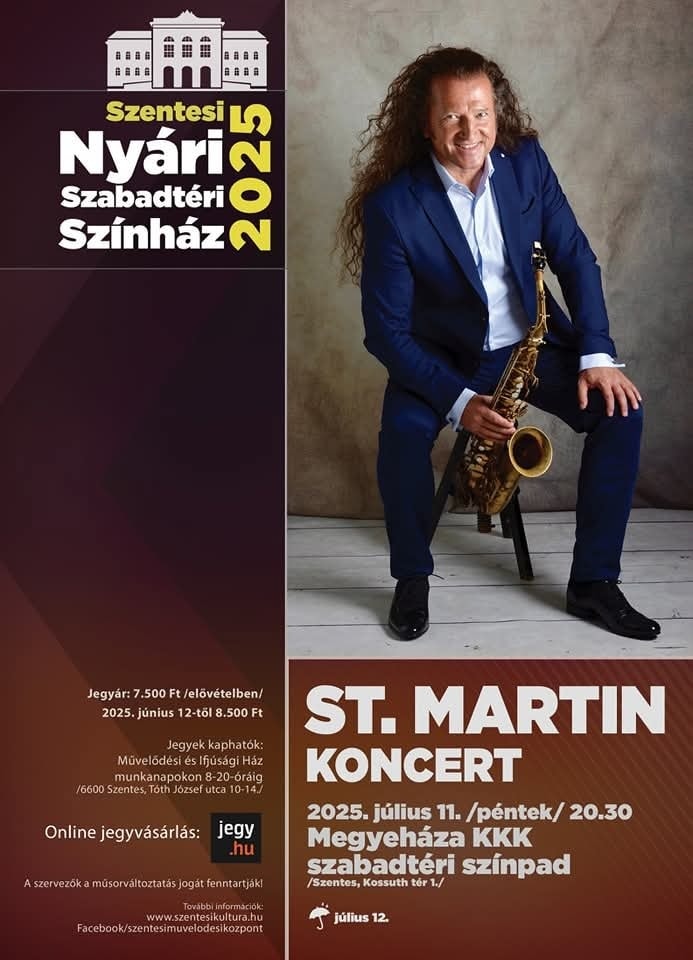 #StMartinSzentesen #SzaxofonVarázs #NyárestiKoncert #ÉlőZene #SzentesProgramok