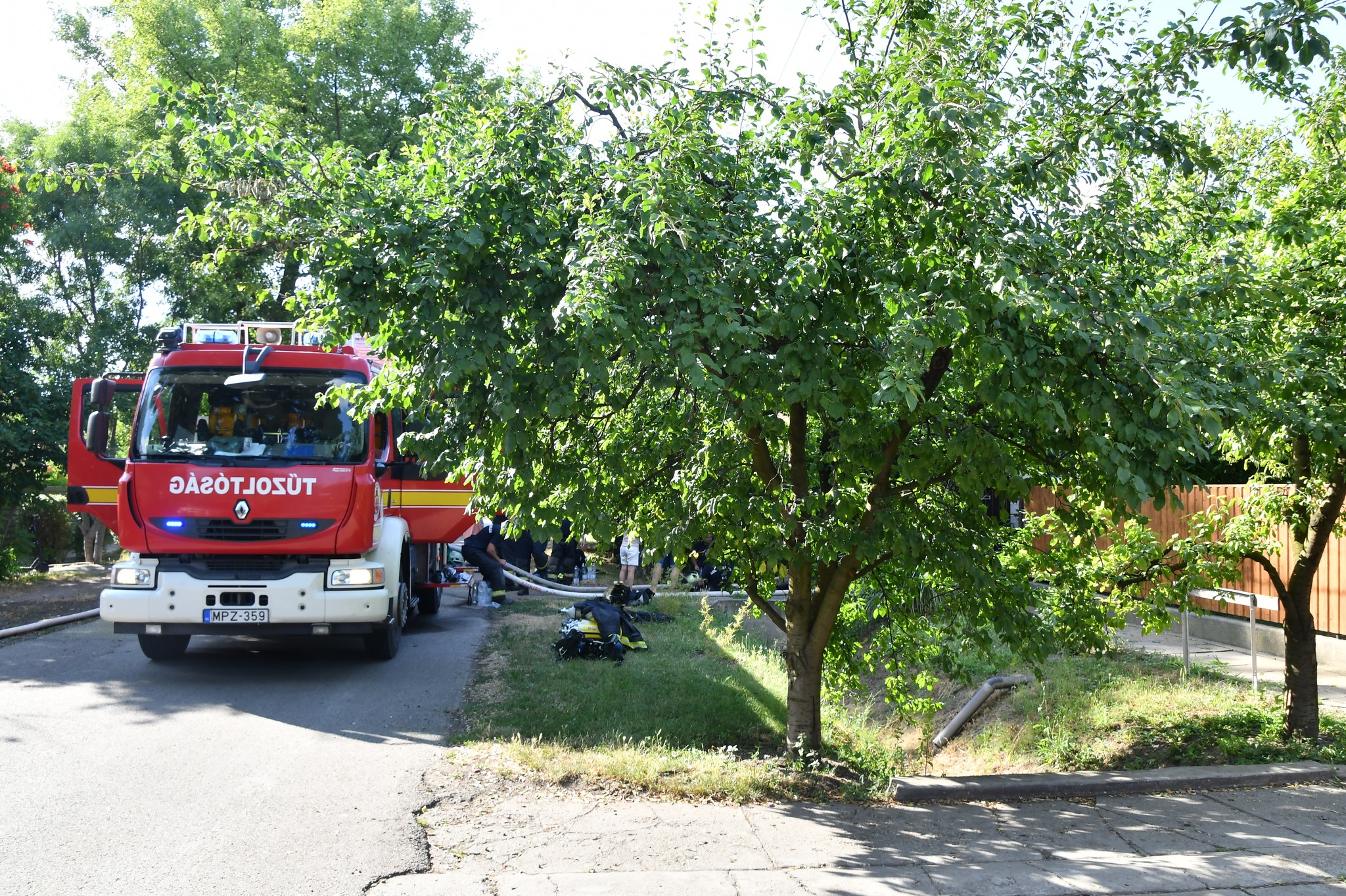 A szentesi hivatásos tűzoltók nem a laktanyából, hanem a strandról indultak a riasztásra: éppen a városi strandnyitón vettek részt, ahol látványos habpartival készültek volna a gyerekeknek. A riasztás azonban közbeszólt, a program elmaradt – a tűzoltók pedig azonnal a helyszínre siettek.