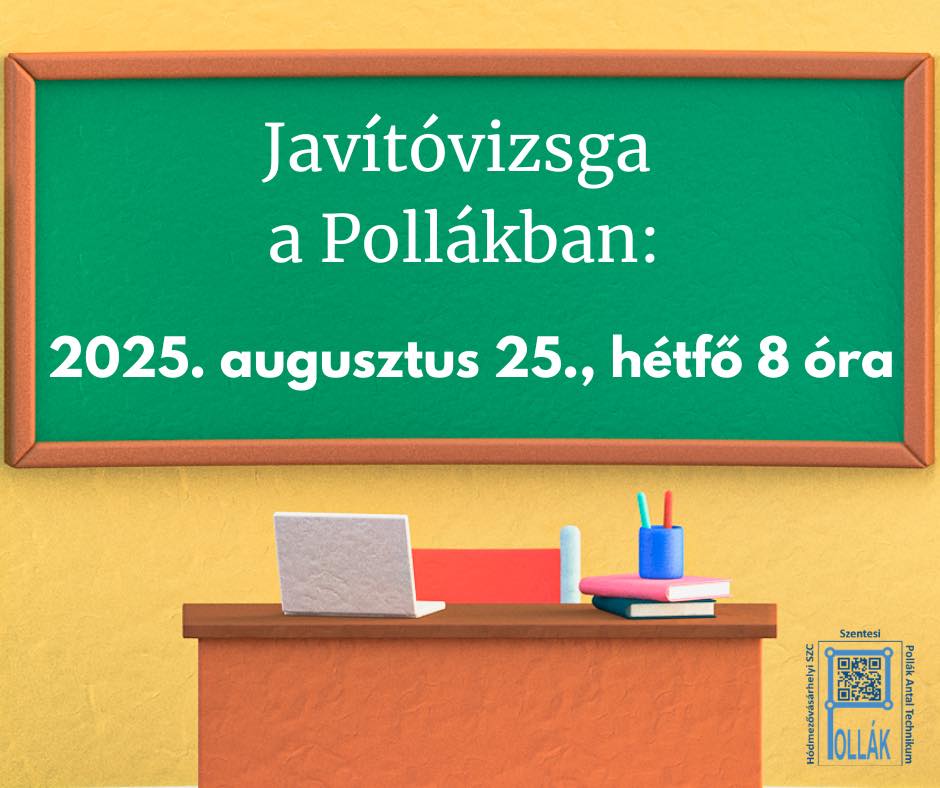 Figyelem! A nyár végi javító- és osztályozóvizsga időpontja az előzetesen hirdetetthez képest megváltozott: augusztus 25-én, hétfőn 8 órakor lesz.