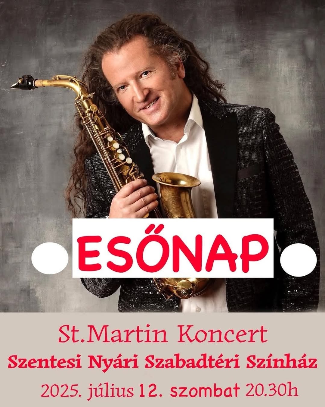 A Szentesi Művelődési Központ tájékoztatja a közönséget, hogy St. Martin mára meghirdetett koncertje – az előrejelzések szerint estére várható eső miatt – a korábban is jelzett esőnapon, tehát 2025. július 12-én, szombaton 20.30 órakor kerül megrendezésre Szentesen a Megyeháza udvarán.❗️❗️