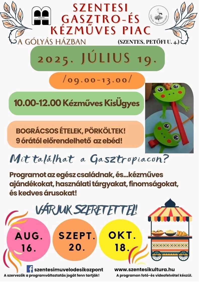🌸✨Minden családot szeretettel várunk a Szentesi Gasztro és Kézműves Piacra jùlius 19-én 9-13 óráig! 🌸✨