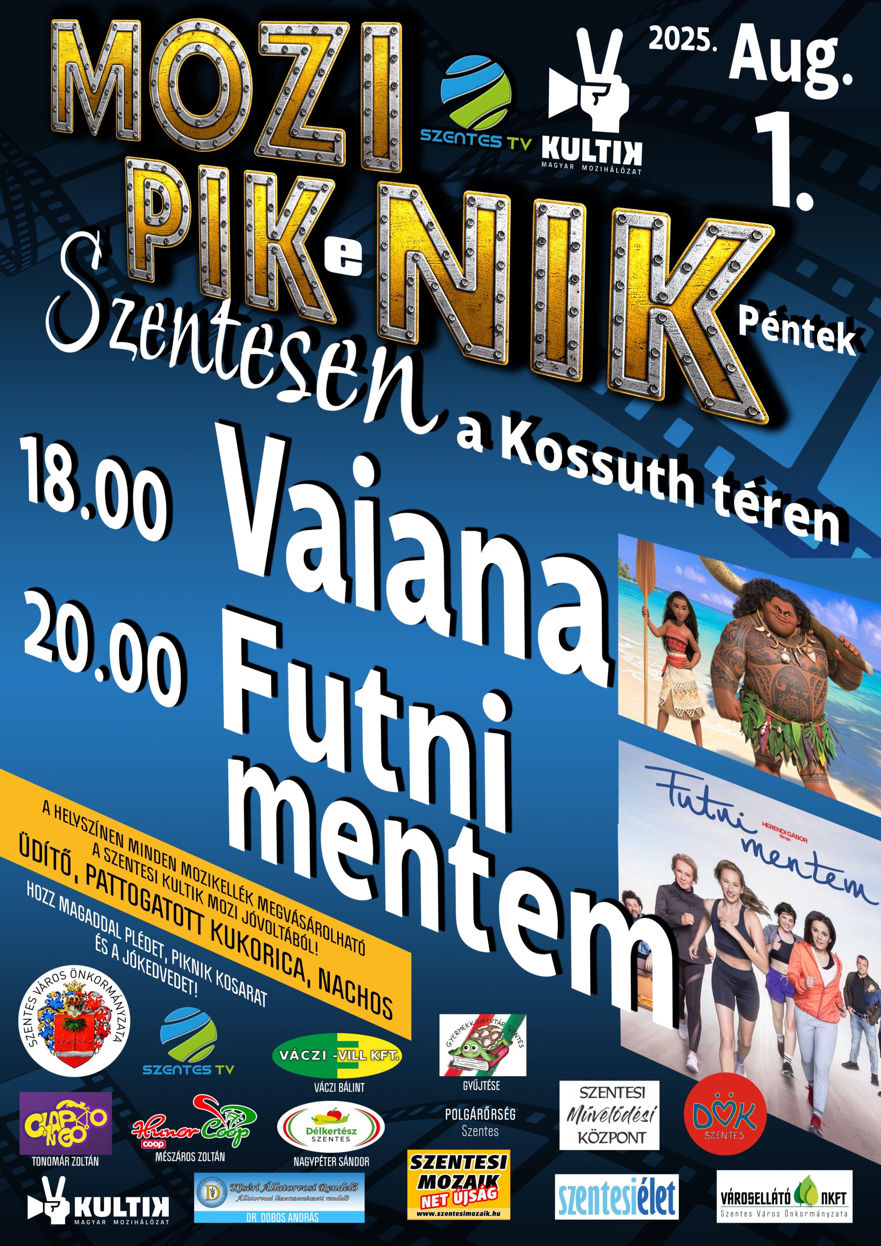 Augusztus 1-jén, pénteken igazi nyáresti kikapcsolódás vár mindenkit a szentesi Kossuth téren! A Szentes TV és a Kultik Mozi szervezésében megvalósuló Mozi PIKeNIK egy felejthetetlen mozis piknikélményt kínál családoknak, barátoknak és filmrajongóknak.
