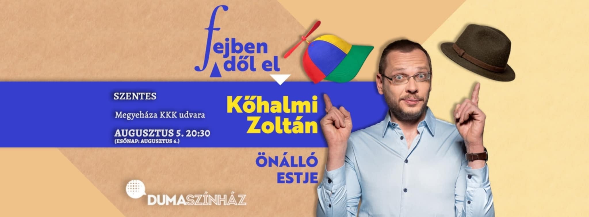 Augusztus 5-én 20:30-kor Kőhalmi Zoltán önálló estje „Fejben dől el” címmel Szentesen, a Megyeháza KKK udvarán! 🎤