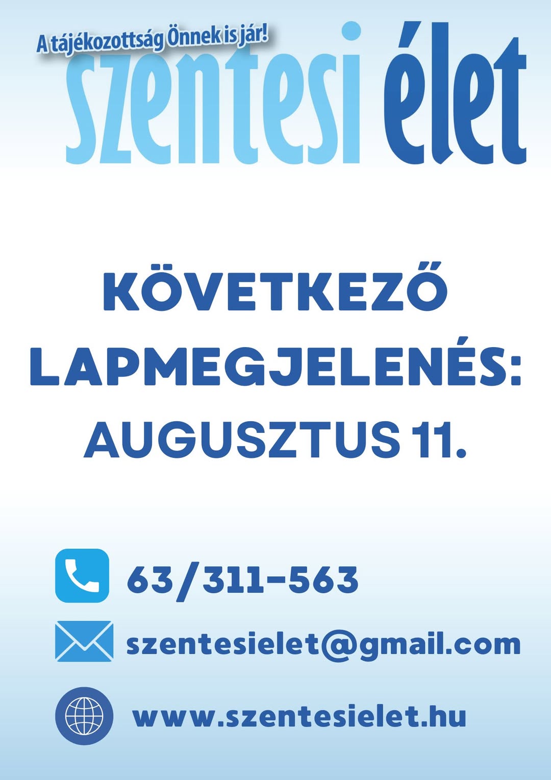 Kezdőlap Szentesi Élet Keresse augusztus 11-től a következő lapszámot a postaládájában!…