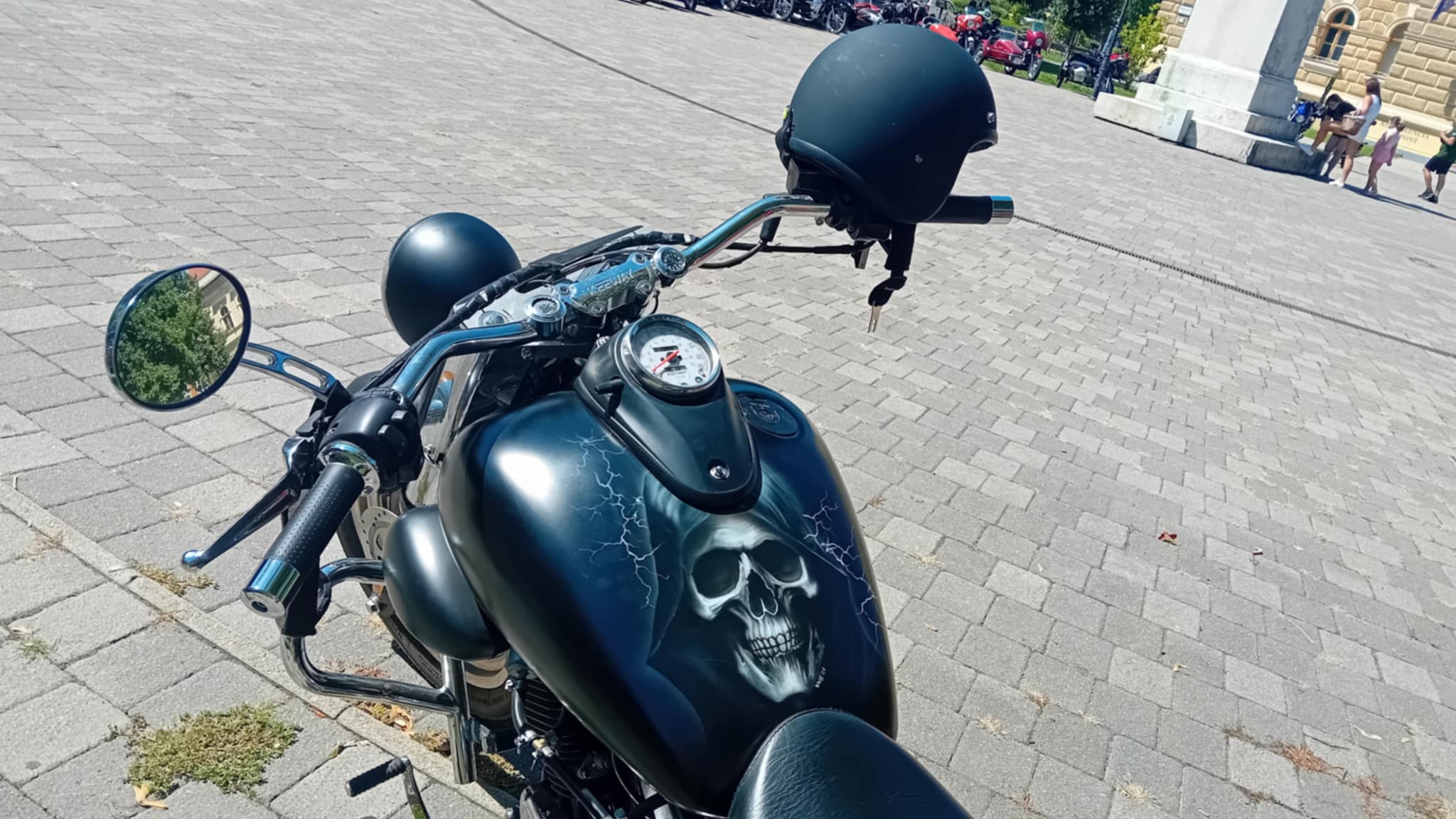 Délelőtt mintegy 100 oldalkocsis motor sorakozott körben a főtéren, közben tulajdonosaik Szentes egyik különlegességét, a közeli Gyuricza Veteránjármű és Régiség Múzeum gyűjteményét is megtekintették. Retro járgányokból a múzeumon kívülre is bőven jutott, Tamás Róbert például egy 1969-ből való Dnepr K-750 nyergében gurult be a Szentes pad mellé. Hat éve van a birtokában a motor, és négy évig restaurálta, míg elindulhatott vele, azóta veterántalálkozókon már többször díjazták – árulta el a férfi. Motormegszállottnak tartja magát, aki már a családját, még az unokákat is megfertőzte szenvedélyével. Van egy „világutazó” 12200-es Yamaha motorja is, sőt két Pannóniával is büszkélkedhet.