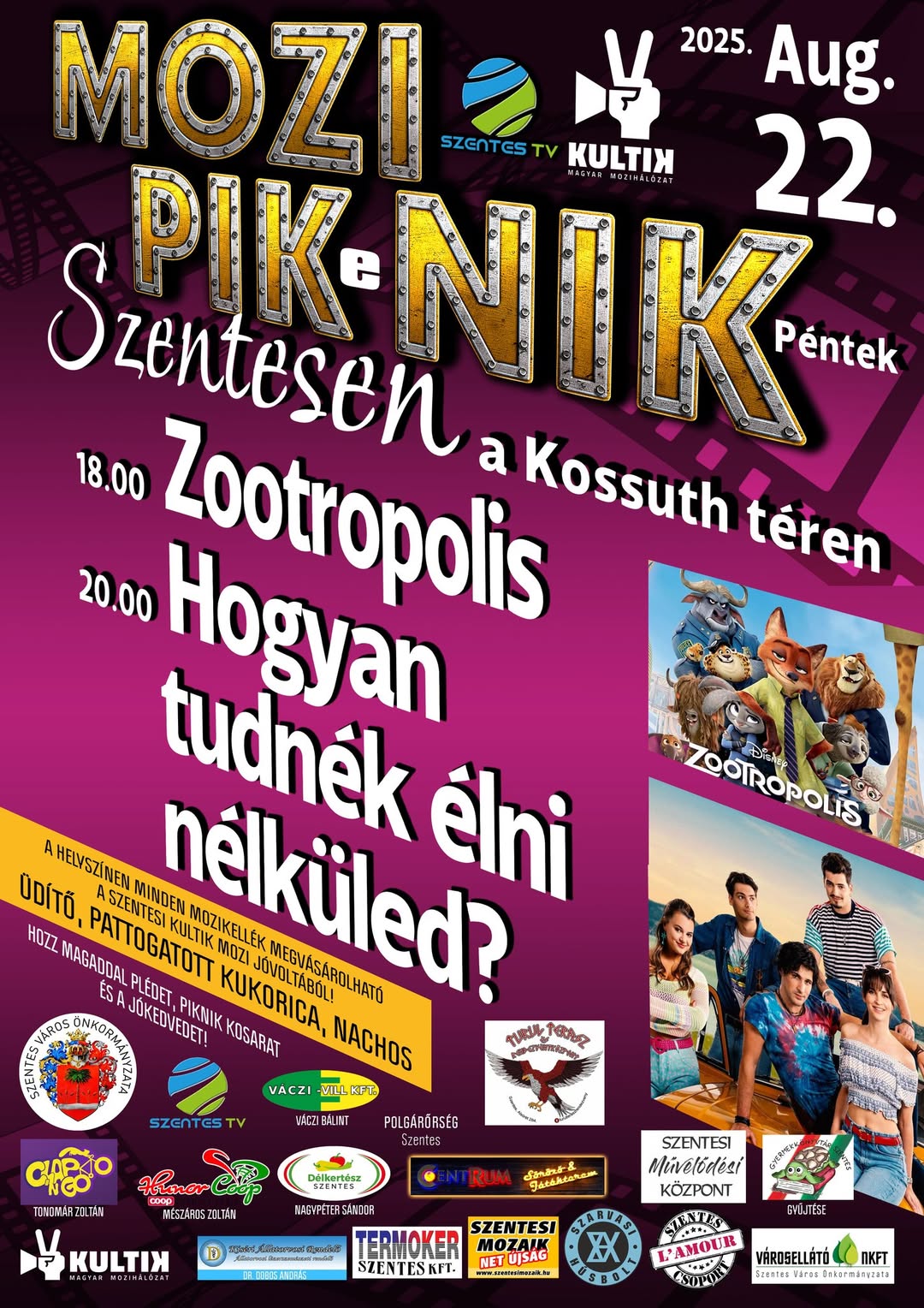 Augusztus 22-én, pénteken várunk mindenkit a szentesi Kossuth téren! A Szentes TV és a Kultik Mozi szervezésében megvalósuló Mozi PIKeNIK egy felejthetetlen mozis piknikélményt kínál családoknak, barátoknak és filmrajongóknak.