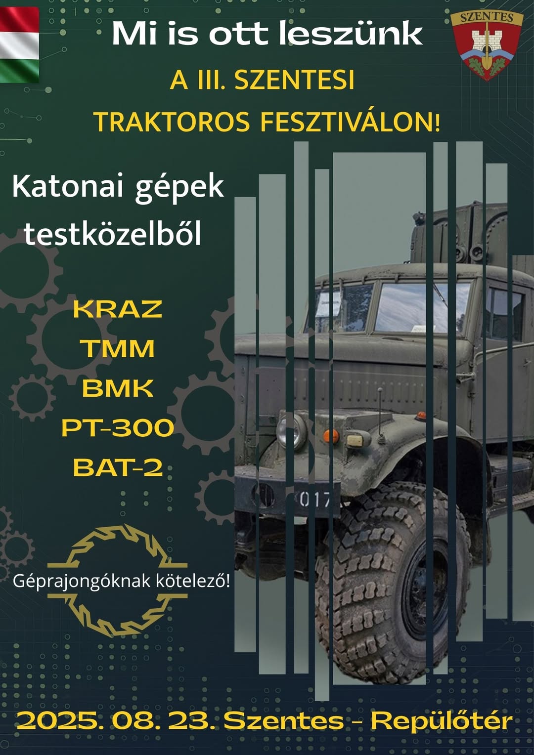 Kezdőlap MH 37. II. Rákóczi Ferenc Műszaki Ezred Találkozzunk a III. Szentesi Traktoros Fesztiválon augusztus 23-án!…