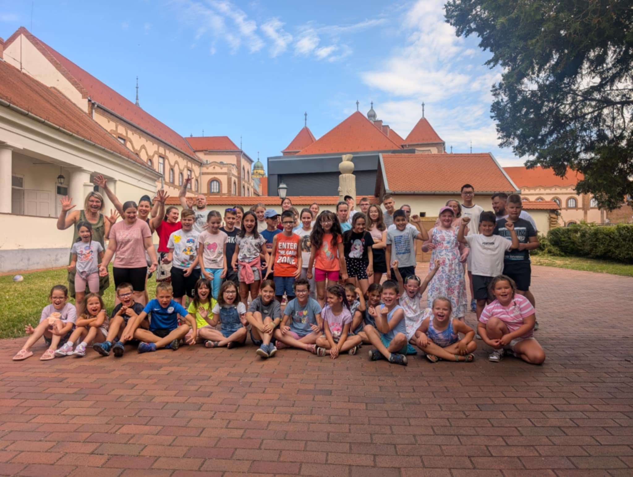 Két egyhetes turnusban az óvodás nagycsoportosoktól a 14-16 évesekig táboroztak gyerekek az ezúttal már a negyedik évben megszervezett angol kalandtáborban a 25 esztendős tanítási tapasztalattal rendelkező Baranyi Szilvia és angoltanár kollégái szervezésében. Az egész nap tulajdonképpen egyetlen angolóra, mert reggeltől délutánig angol nyelven folynak a játékok és a feladatok, sőt még utazás is szerepelt a programban.