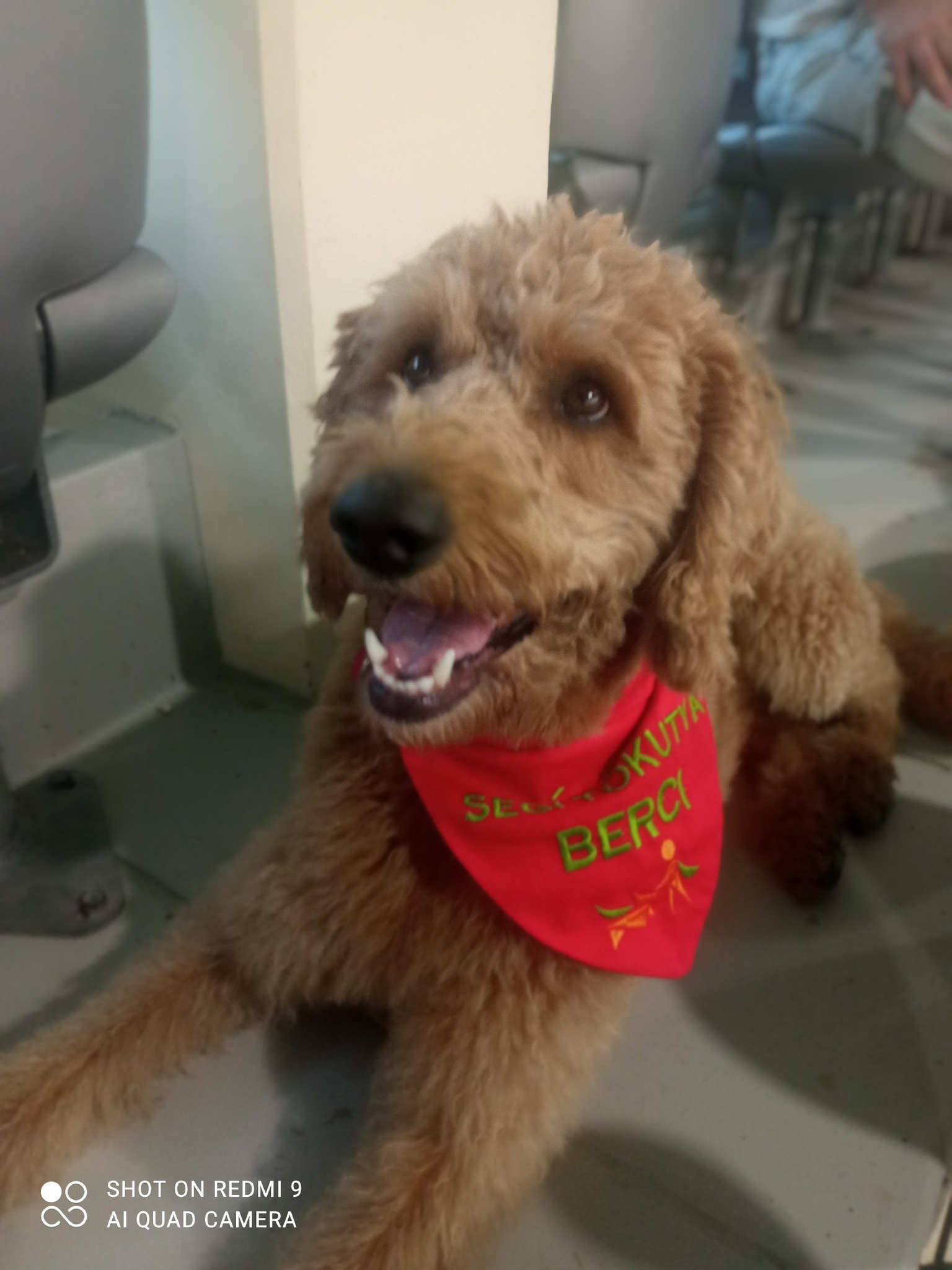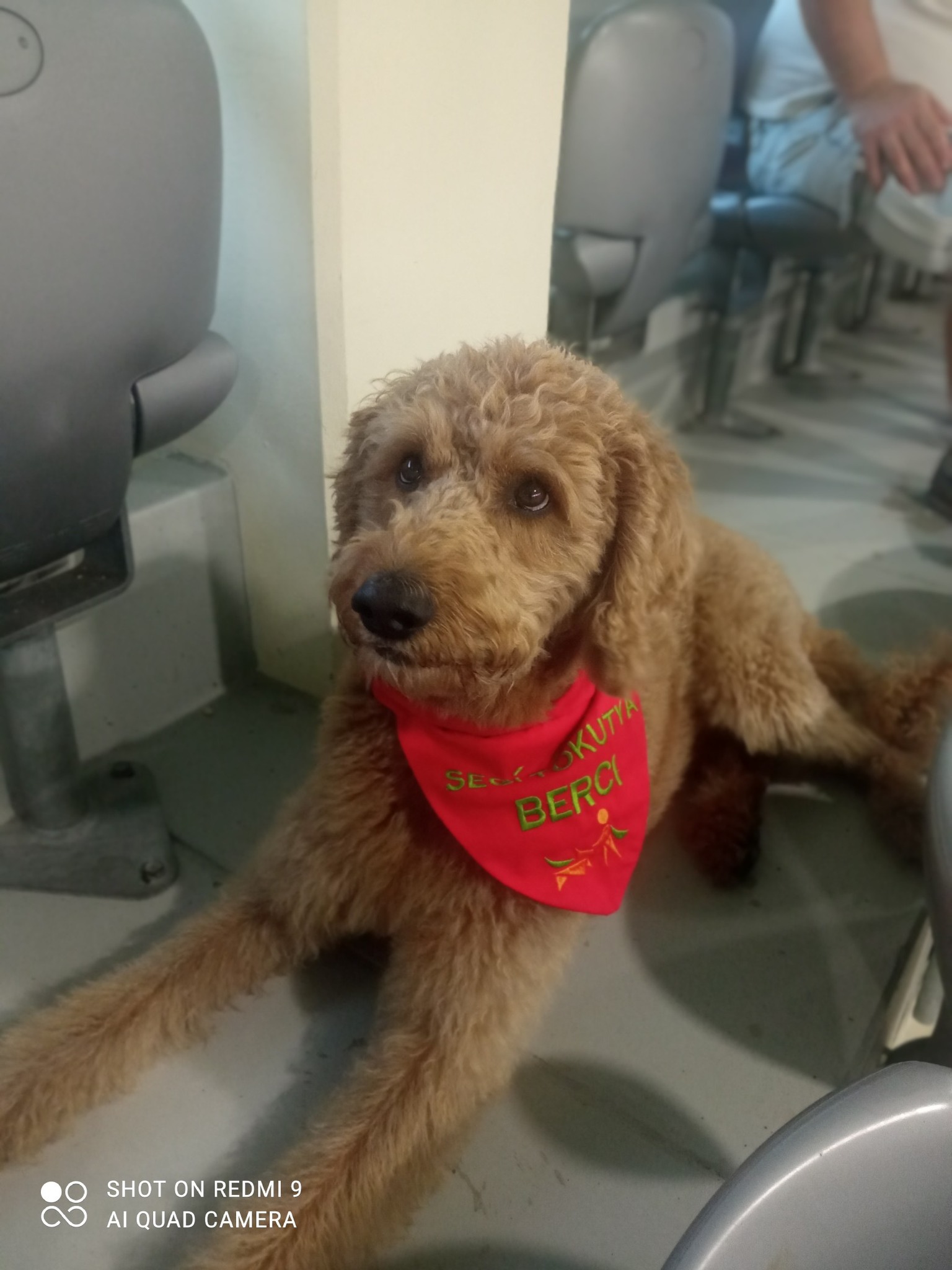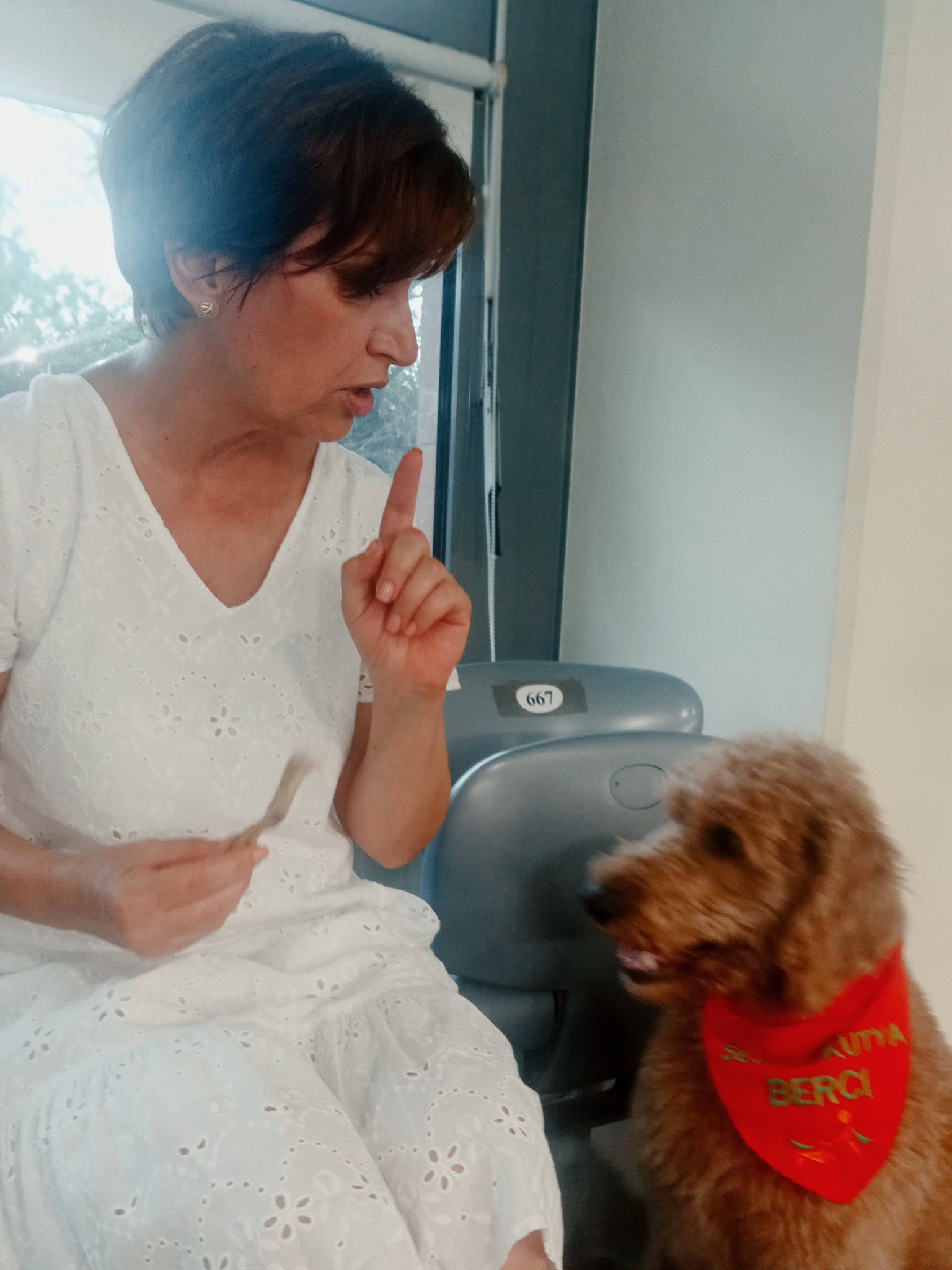A lelátón Hajdú Ati anyukája, Dr.Nagy Katalin gyermekpulmonológus és a terápiás Berci kutyus, a szuperokos labradoodle