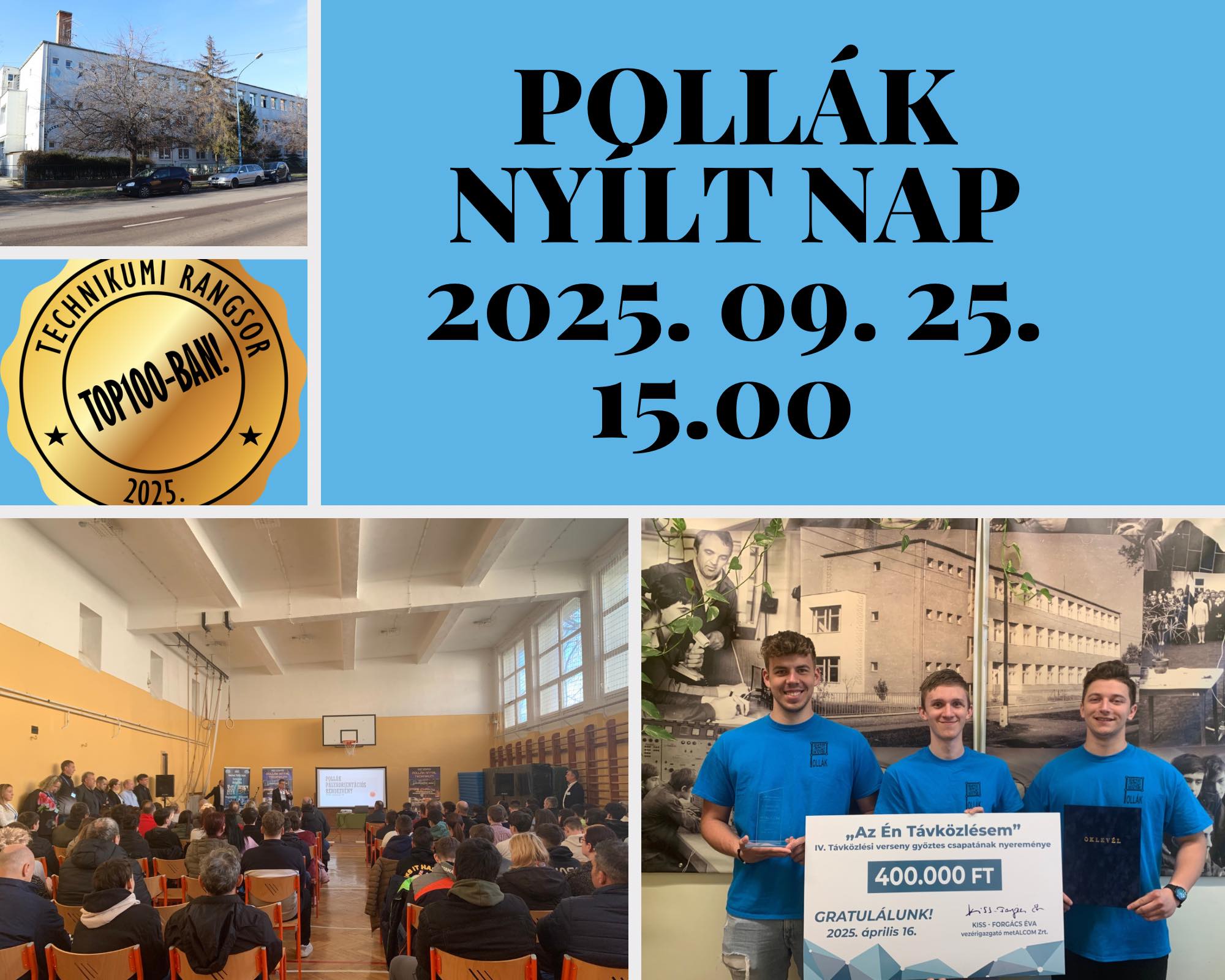 Érdemes feljegyezni: szeptember 25-én, csütörtökön délután a tanév első fontos eseménye a Nyílt Nap a Pollákban! 🖥️📡🔌🦾 Tekintsenek/tekintsetek be a jövő iskolájába: digitális eszközökkel jól felszerelt, jelenleg is épülő-szépülő intézményünkbe, összetartó közösségünkbe! Várunk mindenkit szeretettel!