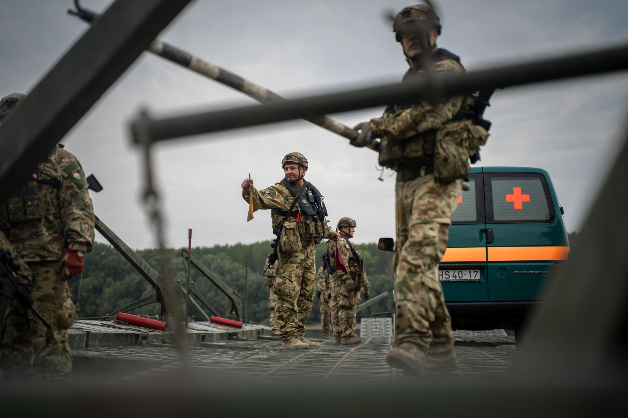 Az átkelést szimulált dróntámadás zavarta meg, amelyre katonáink azonnal, szakszerűen reagáltak. A kijelölt állomány fedezékbe vonult és biztosította a helyszínt.