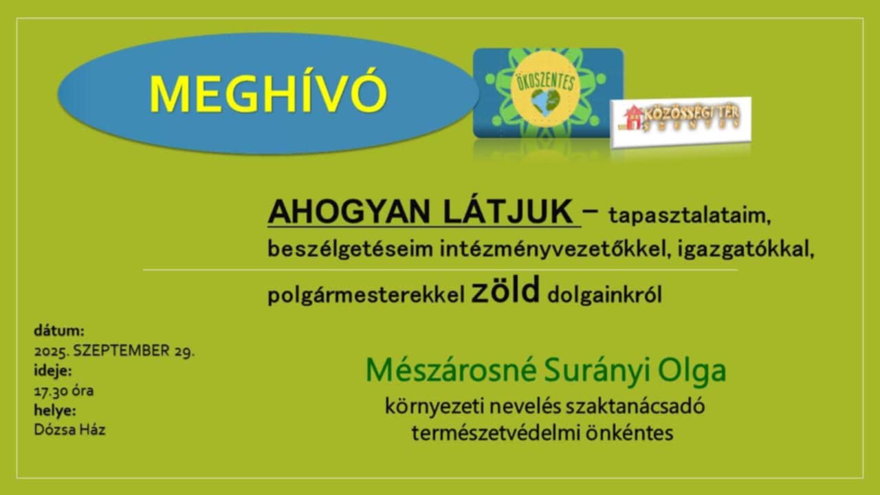 Előadás „zöld dolgainkról” hétfőn a Dózsa Házban….