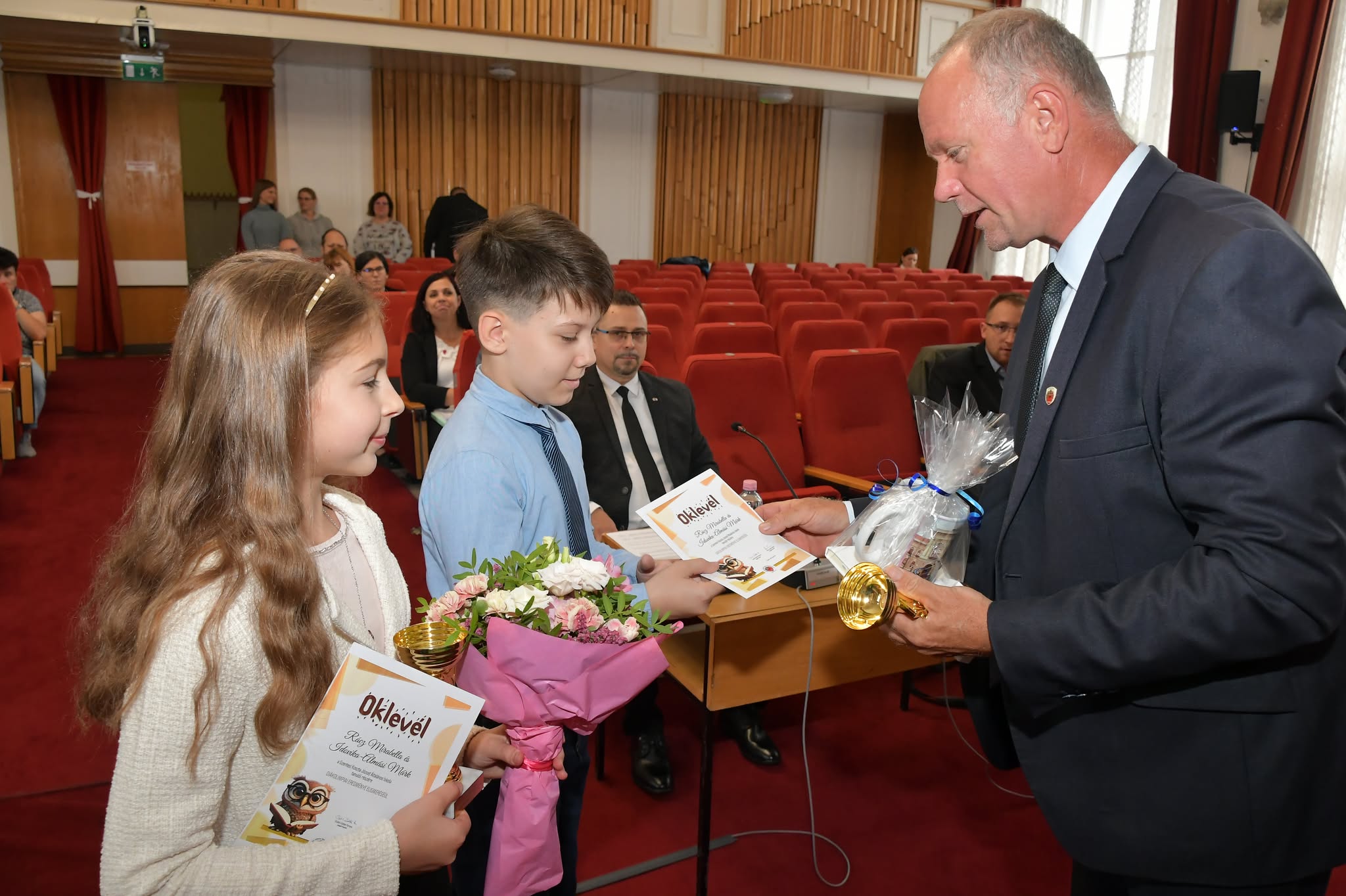A mai testületi ülésen Szabó Zoltán Ferenc polgármester okleveleket adott át a kimagasló sporteredményt elért diákoknak.