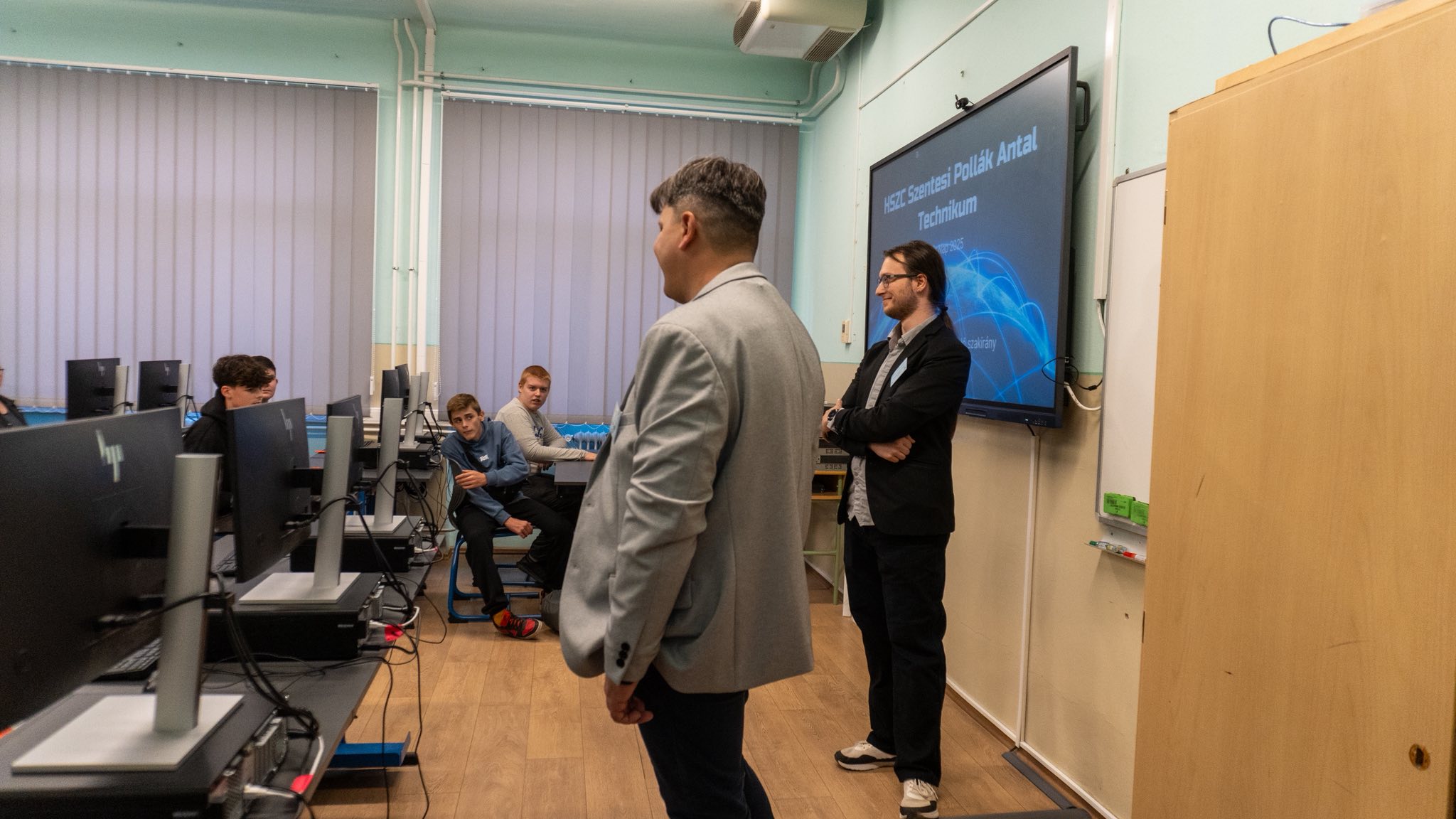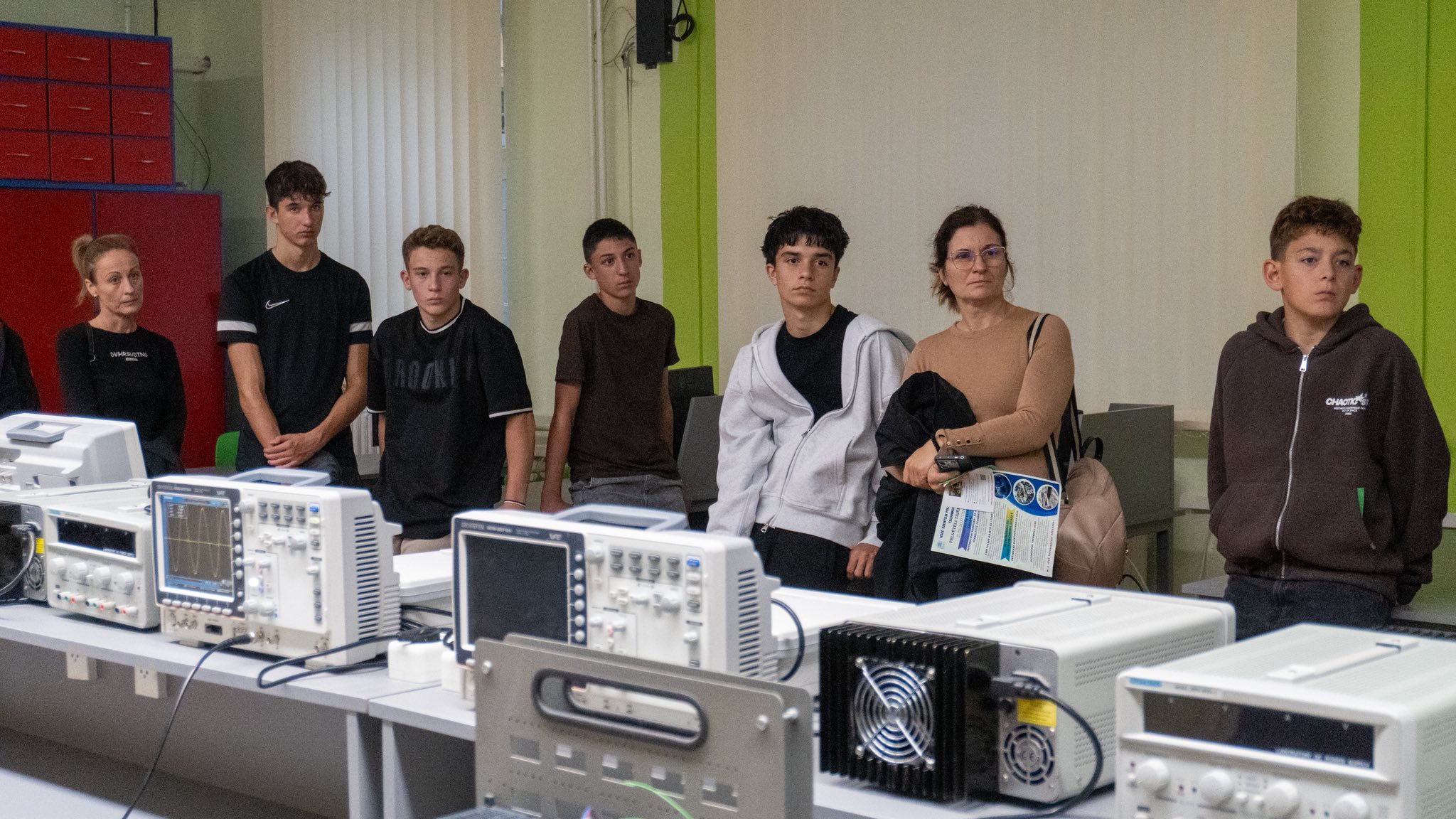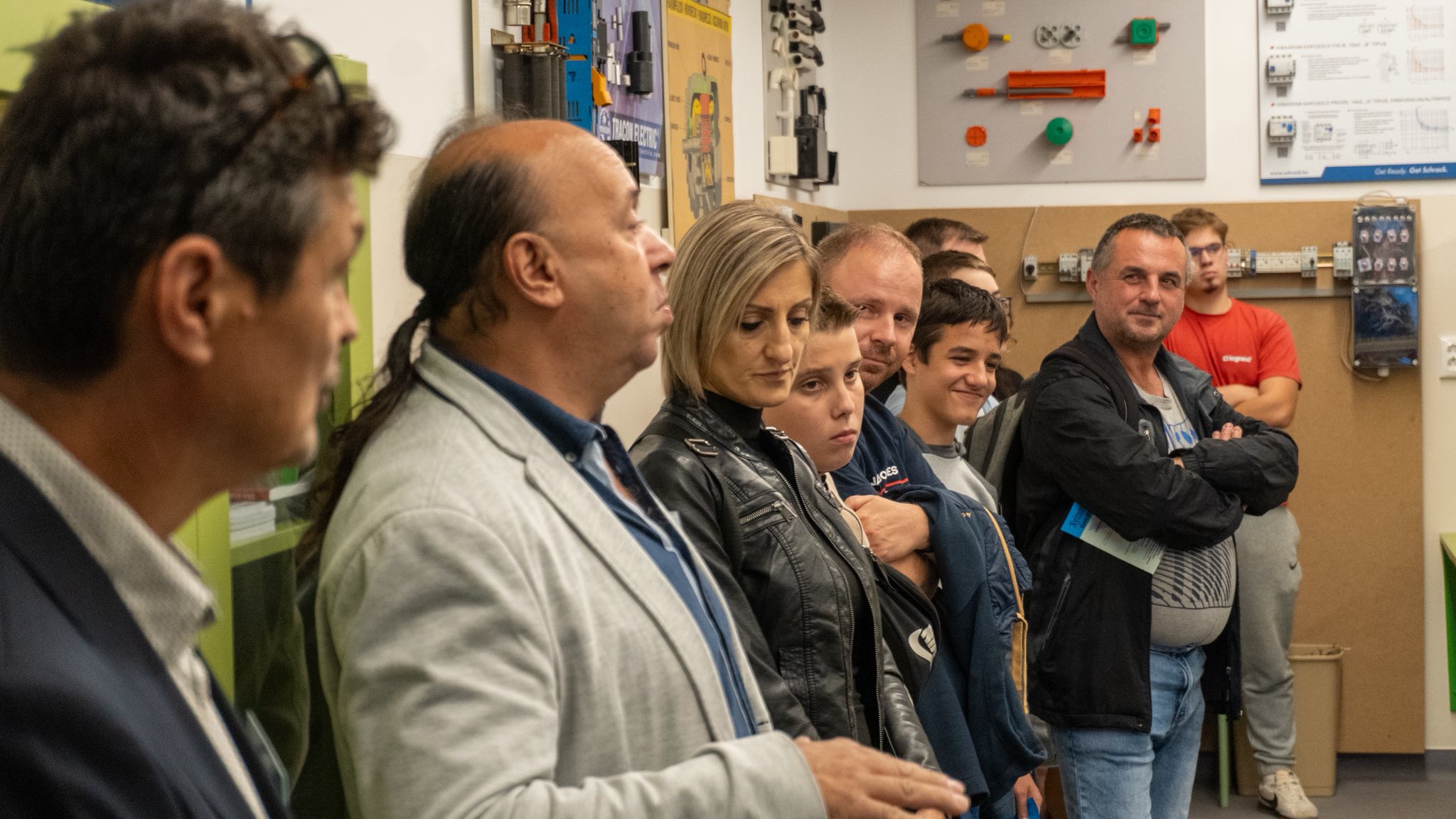 Miután látogatóink a saját fejlesztésű regisztrációs rendszerünkön és 9-10. évfolyamos segítőink sorfalán keresztül eljutottak a központi tájékoztatóra, az épület bejárása, a képzések bemutatkozása következett. Molnár Norbert a rendszerüzemeltető, Vincze Mihály és Huszka Adrián a szoftverfejlesztő, Ágoston Csaba az automatikai technikus, míg Szemerédi Endre és Hajdú Zoltán az erősáramú elektrotechnikus szakmáról tartott rövid, de informatív előadást egy-egy helyszínen. Még van idő a megfelelő szak kiválasztására, október 8-án, a Nyitott Kapuk Napján újabb élményekkel várunk mindenkit!