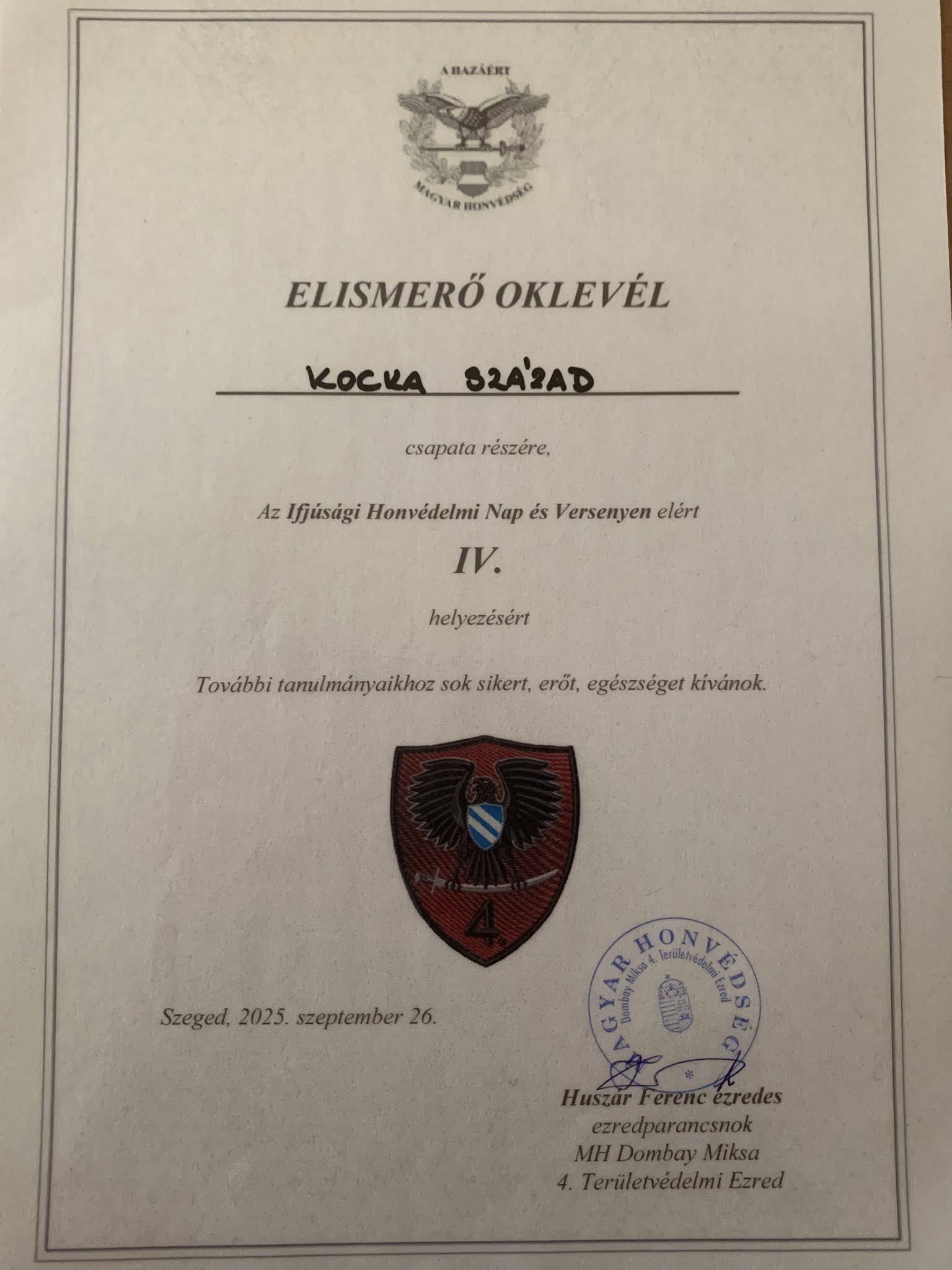 Kezdőlap Hírek Oktatás, tanulmányi hírek Nagyszerű siker a honvédelmi versenyen!…