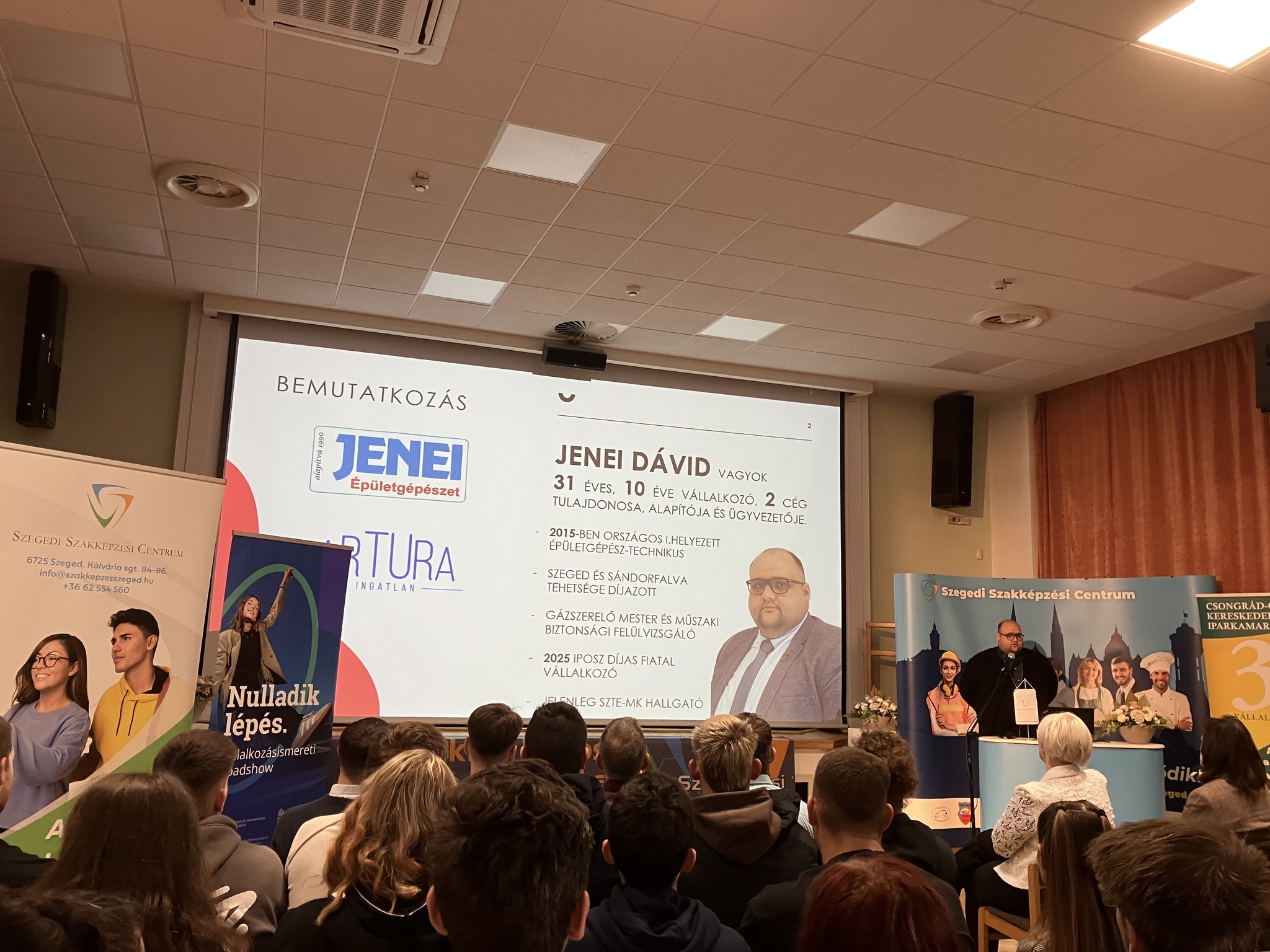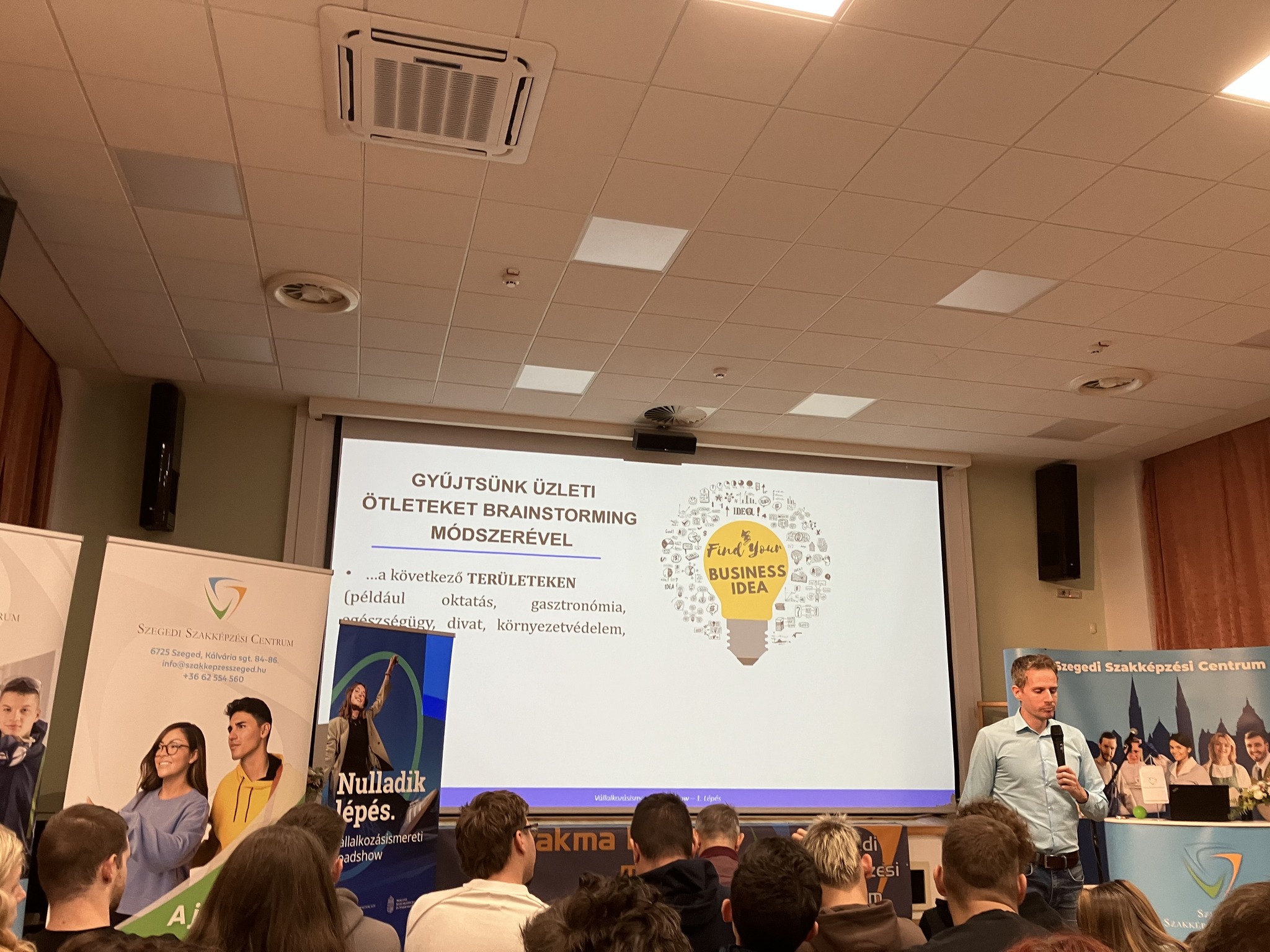 Október 1-én a HSZC Szentesi Zsoldos Ferenc Technikum 13. B osztály végzős tanulói a CSMKIK által szervezett Nulladik lépés című vállalkozásismereti roadshow-n vehettek részt.