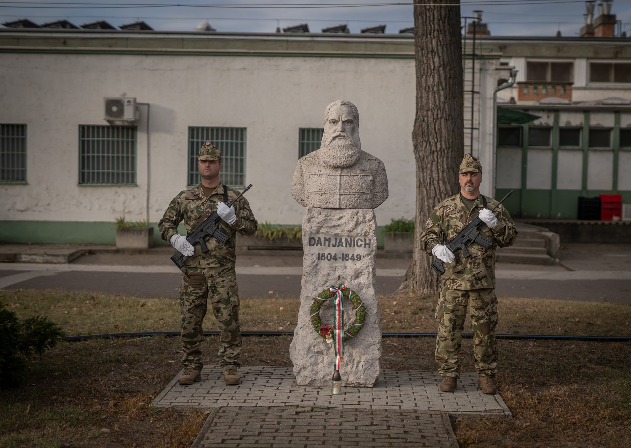 Október 6-án méltó módon emlékeztünk az 1849-ben Aradon kivégzett hősökre. A műszaki katonák nevében Horváth Csaba alezredes, alakulatunk parancsnok-helyettese és Pesti István százados, a Helyőrségtámogató Parancsnokság vezetője helyezte el az emlékezés lángját az ország szabadságáért életüket áldozó honfitársaink emlékhelye előtt.