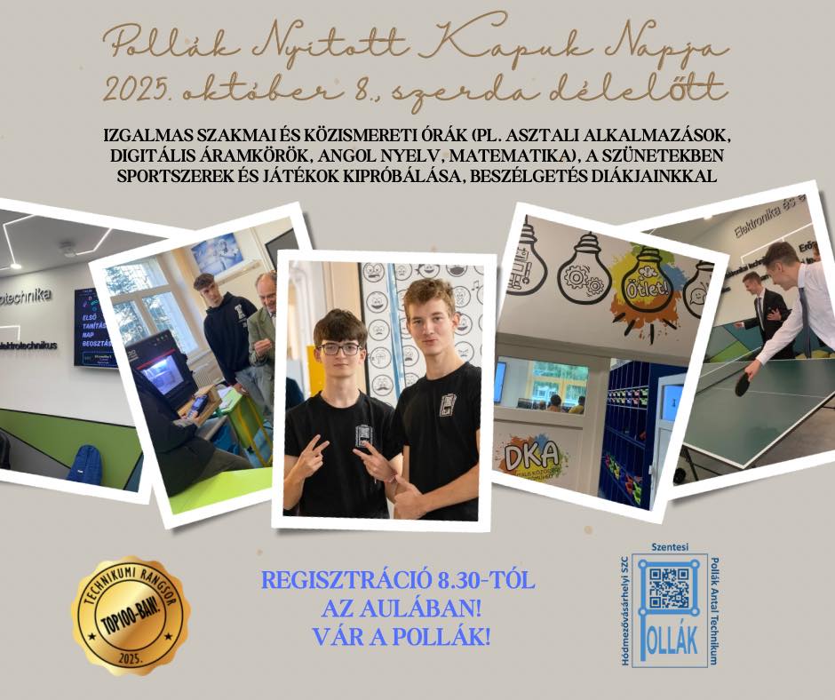 Kezdőlap Hírek Oktatás, tanulmányi hírek És már itt is van! Pollák Nyitott Kapuk Napja – október 8.,...