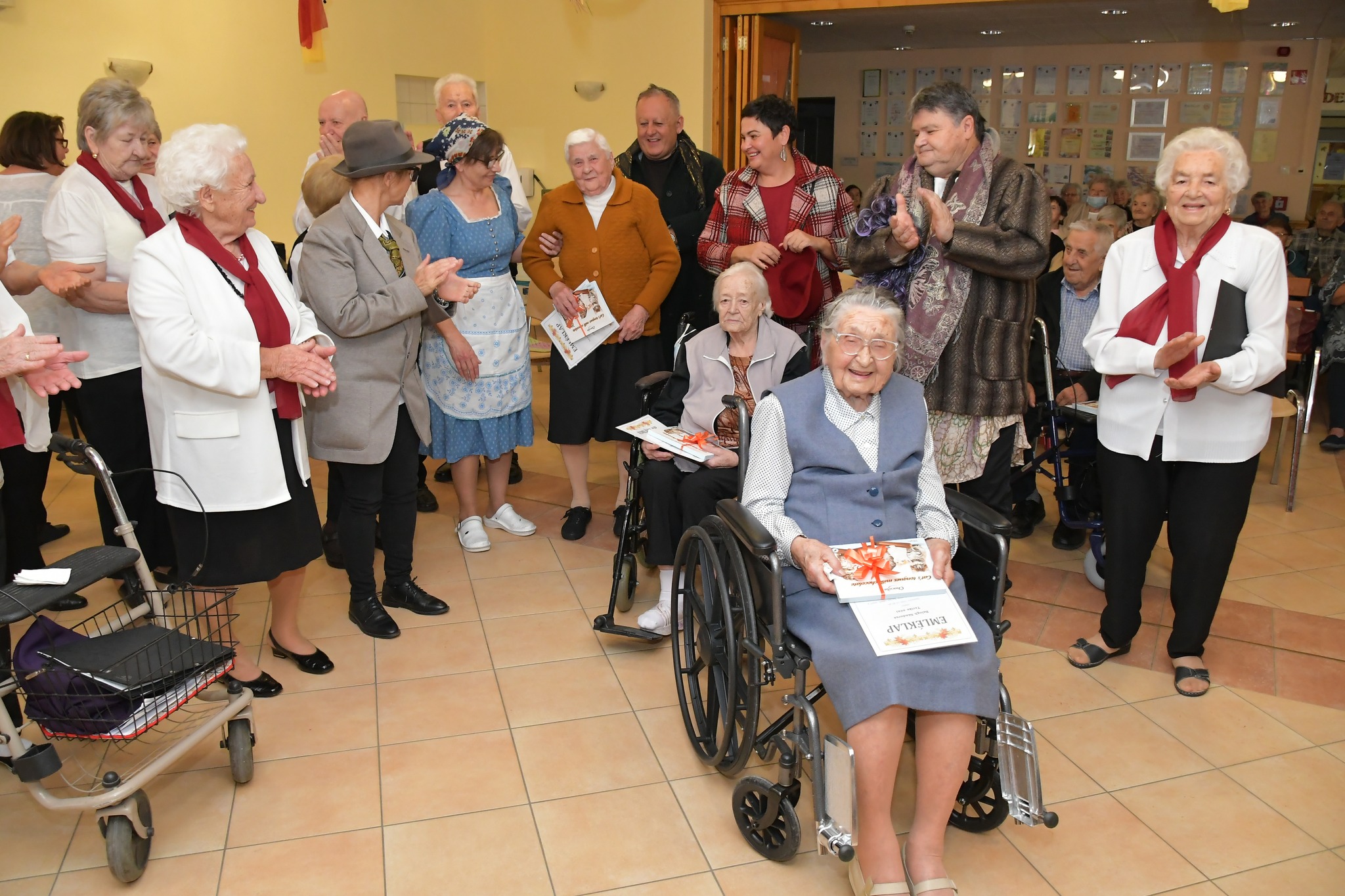 Az ünnepség egyik legmeghatóbb pillanata az volt, amikor köszöntötték az otthon legidősebb lakóit. Elsőként a decemberben 105. születésnapját ünneplő Balogh Sándorné Terike nénit, majd Faragó Istvánné Zsófi nénit, aki jövő júliusban tölti be a 100. életévét. Szintén felköszöntötték Horváth Lászlóné Erzsike nénit, aki a napokban lesz 99 éves, valamint az otthon legidősebb férfi lakóját, Szőrfi Józsefet, aki márciusban ünnepelte 96. születésnapját.