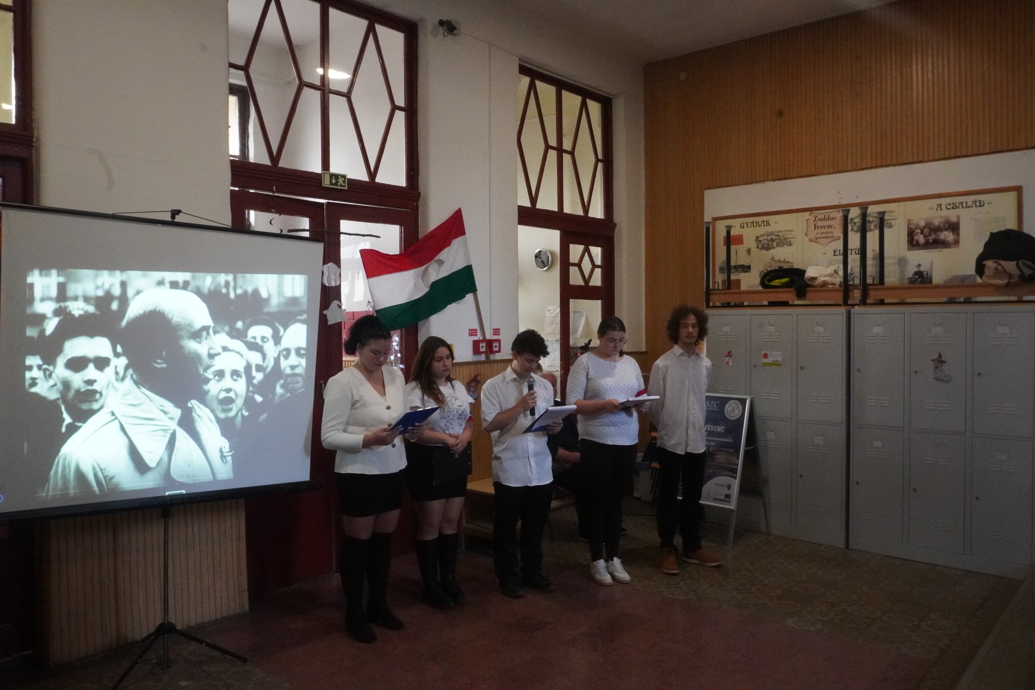 Diákjaink megható műsorral készültek, amellyel felelevenítették az 1956-os események jelentőségét, üzenetét és a szabadságvágy örök érvényességét. Köszönjük a szereplőknek és a felkészítő oktatónak, Pap Andrásnak a nagyszerű munkát!