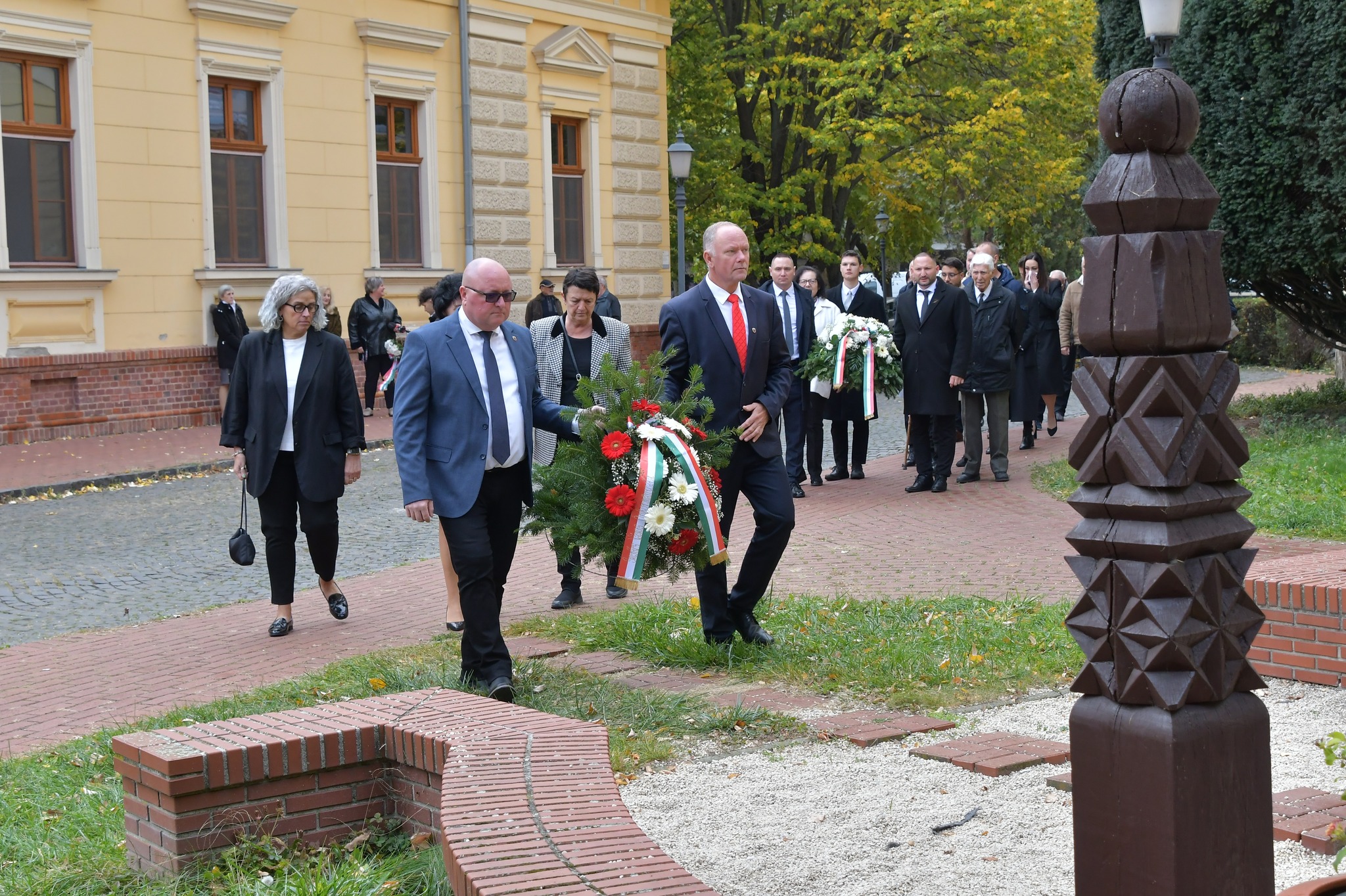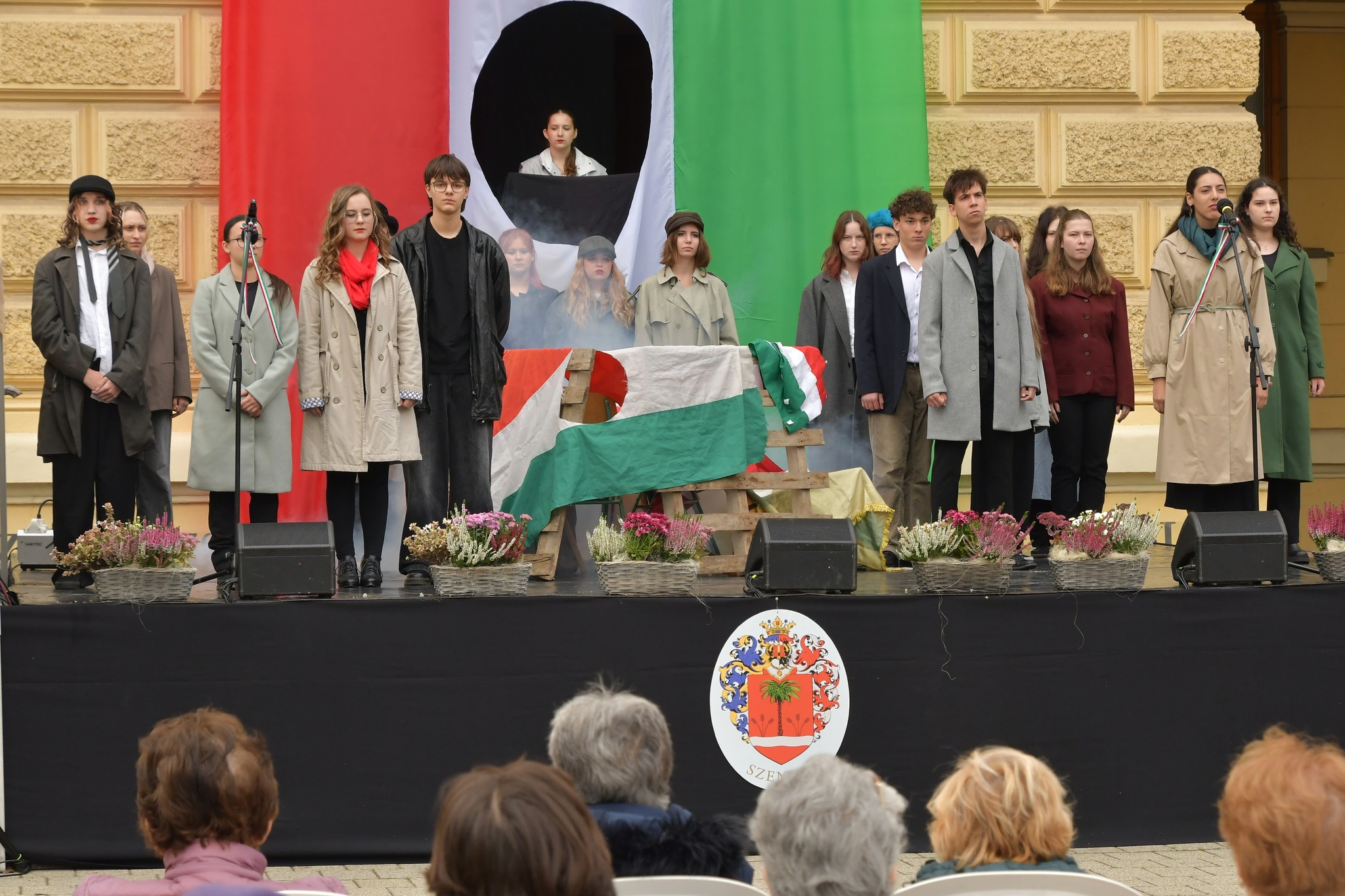 A megemlékezés a Keleti István AMI drámatagozatos tanulóinak műsorával folytatódott, majd a résztvevők a Rózsa Gábor téri 1956-os emlékműnél helyezték el a tisztelet koszorúit.