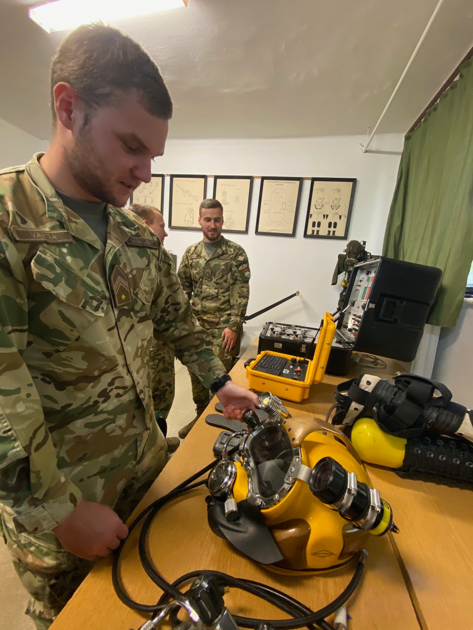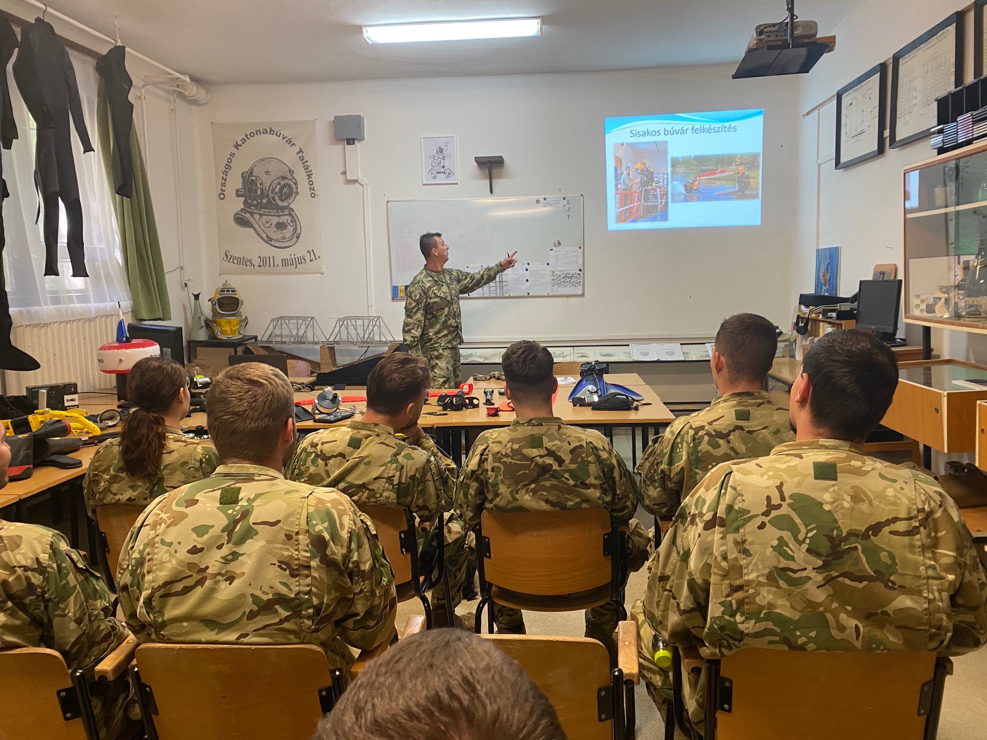 A harmad- és negyedéves tisztjelöltek alakulatunknál gyakorlatban is megismerkedhettek a búvárkiképzés rendszerével, a műszaki feladatok során használt technikai eszközökkel, továbbá a csapatmúzeumban az ezred múltjába és hagyományaiba is bepillantást nyertek.