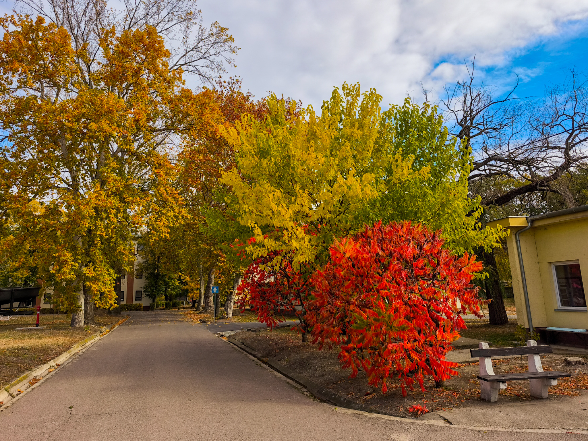 A szentesi Damjanich laktanya udvarát aranyba, vörösbe és barnába öltöztették az őszi lombok.