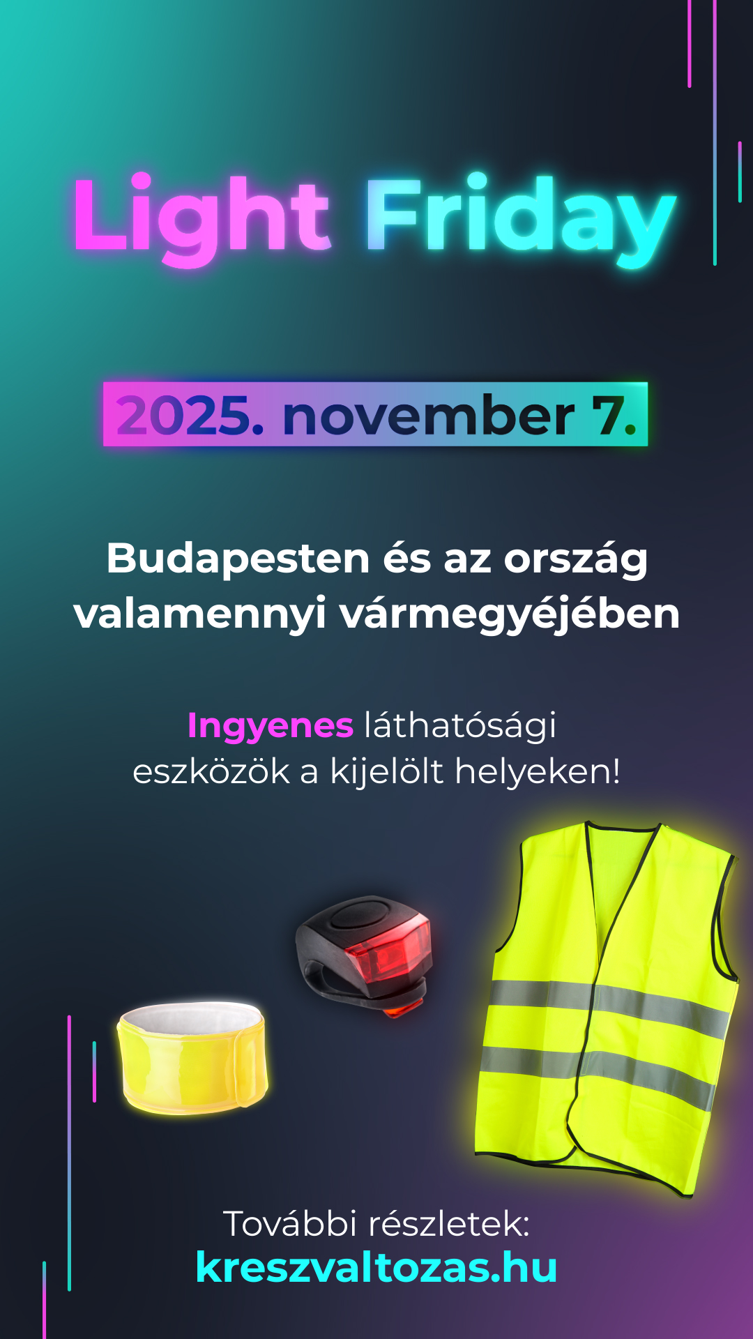 Az őszi-téli időszak veszélyeire fel lehet készülni. Ne hagyd ki: november 7-én, pénteken gyere el, válaszd a biztonságot, és közlekedj úgy, hogy mások is könnyen észre vegyenek!