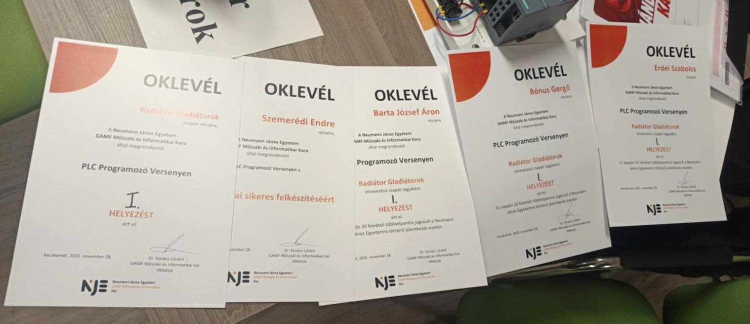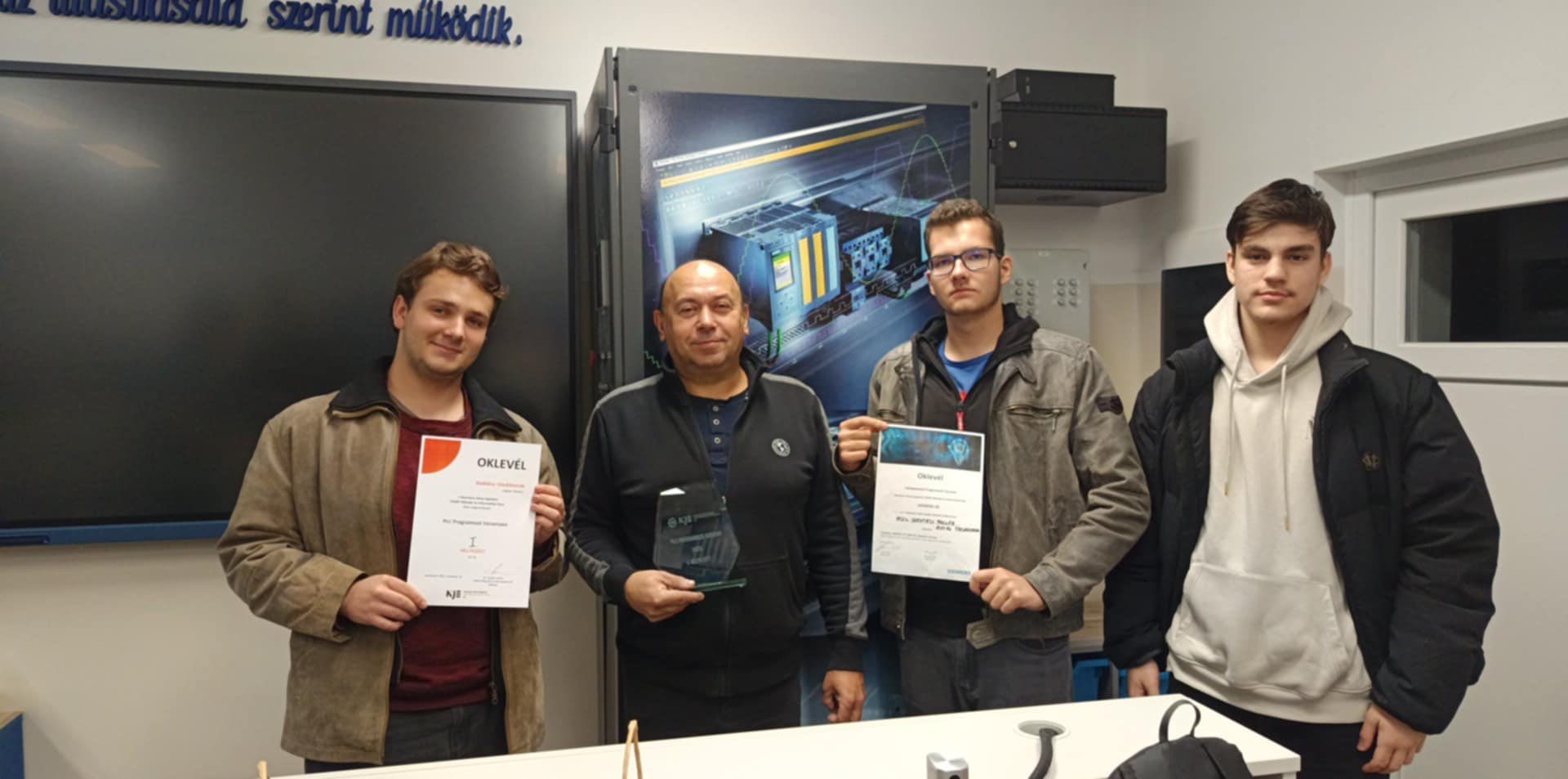 A Pollák csapata 1. helyezést ért el a kecskeméti Neumann János Egyetem által rendezett PLC Programozó Versenyen! Barta József Áron, Bónus Gergő és Erdei Szabolcs ezzel a nagyszerű teljesítménnyel értékes oktatócsomagot nyert iskolánknak. Másik csapatunk is szépen szerepelt: Barta Gábor, Gálik Attila és Tordai Mátyás a 4. helyen végzett. Szívből gratulálunk tehetséges diákjainknak, valamint felkészítő oktatóiknak, Szemerédi Endrének és Nagy Leventének! 👏🏻