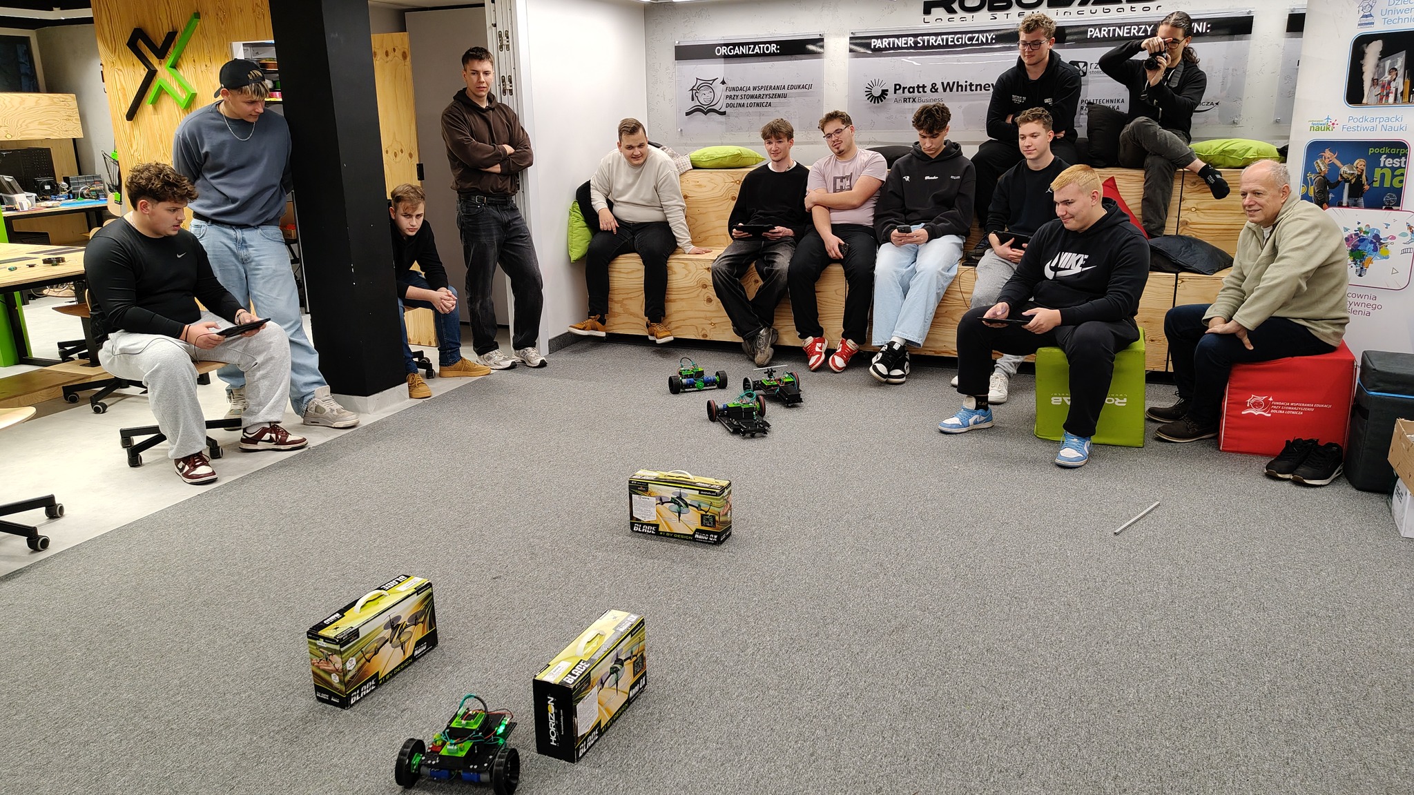 A hét második felében diákjaink a rzeszówi egyetemen tettek látogatást, ahol őket is bevonták az ultrahangos diagnosztikába, az érvizsgálatba egy laborgyakorlat során. Egy másik laborfoglalkozáson a VR programozás alapjait tanulhatták meg és próbálhatták ki, ahol egy bowling pályát kellett „megépíteniük ” és letesztelniük VR szemüvegen keresztül. A Pollákban hamarosan elkészülő új e-sport teremben lévő gépek már alkalmasak lesznek a VR technológia használatára. Az utolsó szakmai program az egyetem versenygokartjának gyártásába való betekintés volt, majd a RoboLAB tantermében önálló Arduino alapú robotépítési feladatot kaptak diákjaink. Az elkészült robotok először gyorsaságban és akadálykerülésben mérettették meg egymást, majd rövid kreatív átépítés után robotszumó verseny következett a négy csapat között. Ez a labor az iskolánkban található DKA labor lengyel megfelelője. Az út a 2025-1-HU01-KA122-VET-000343386 számú Erasmus-projekt keretében, az Európai Unió támogatásával valósulhatott meg.
