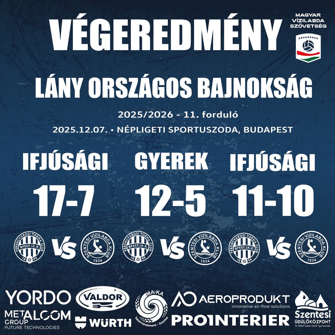 A mai napon a lány utánpótlás bajnokságok 11. fordulóját rendezték, a Szentesi VK. korosztályos csapatai a Ferencváros vendégeként ugrottak medencébe a Népligetben. A legnagyobb izgalmakat a serdülők találkozója hozta, ahol szinte a végletekig fej-fej mellett haladt a két együttes, a hazaiak végül egy góllal nyerték meg az összecsapást.