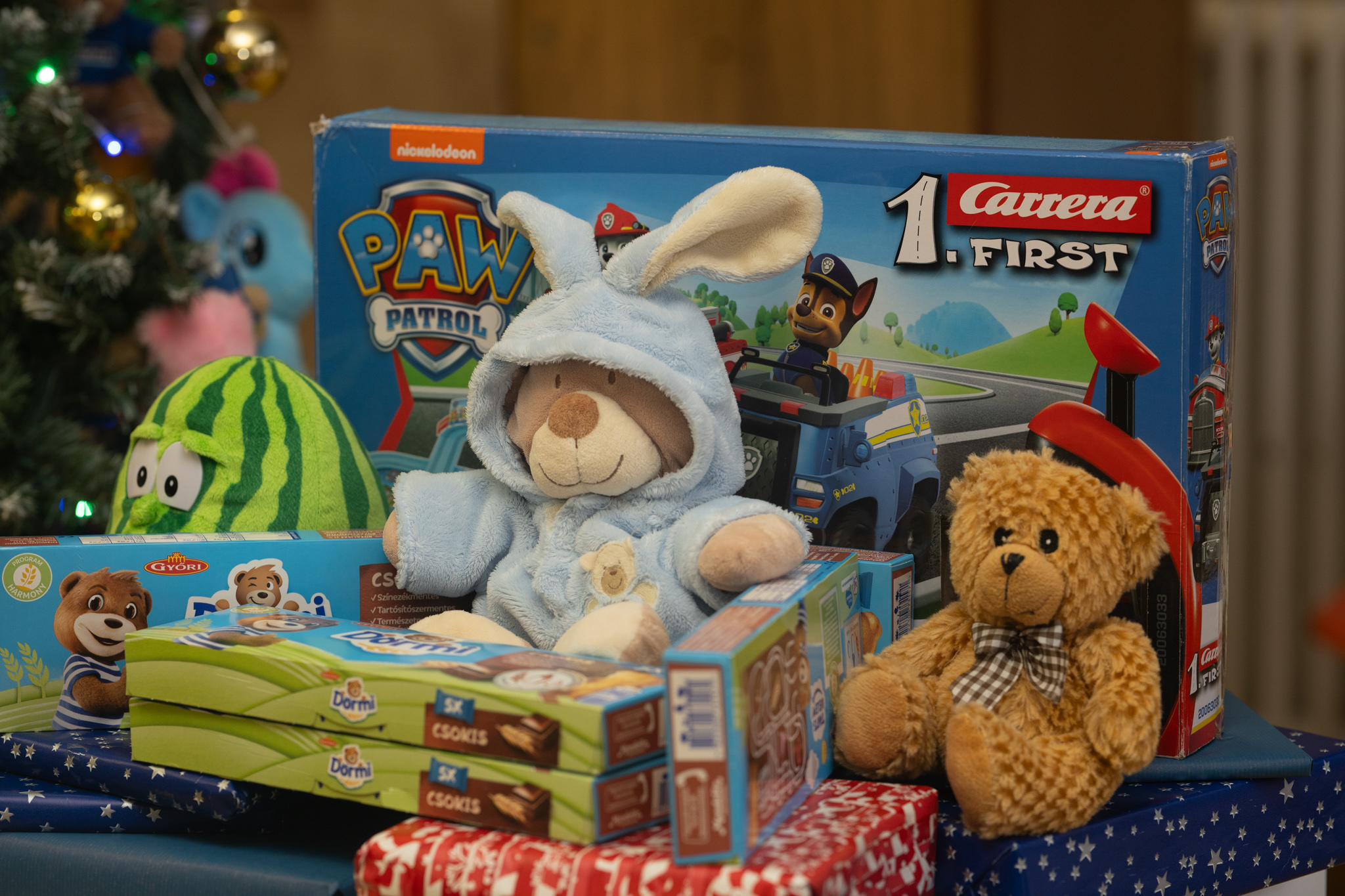 🎁A nemes cél érdekében megvalósult példaértékű összefogásnak köszönhetően számos szeretettel válogatott ajándék érkezett az osztályra: plüssökkel díszített karácsonyfa, édességek és könyvek, pelenkázóba való szivacsbetétek, hűtőszekrény, íróasztal, valamint három orvosi játék készlet, amelyek lehetőséget adnak a gyermekeknek a „kisdoktoros” játékra, enyhítve ezzel a kórházi napok feszültségét.