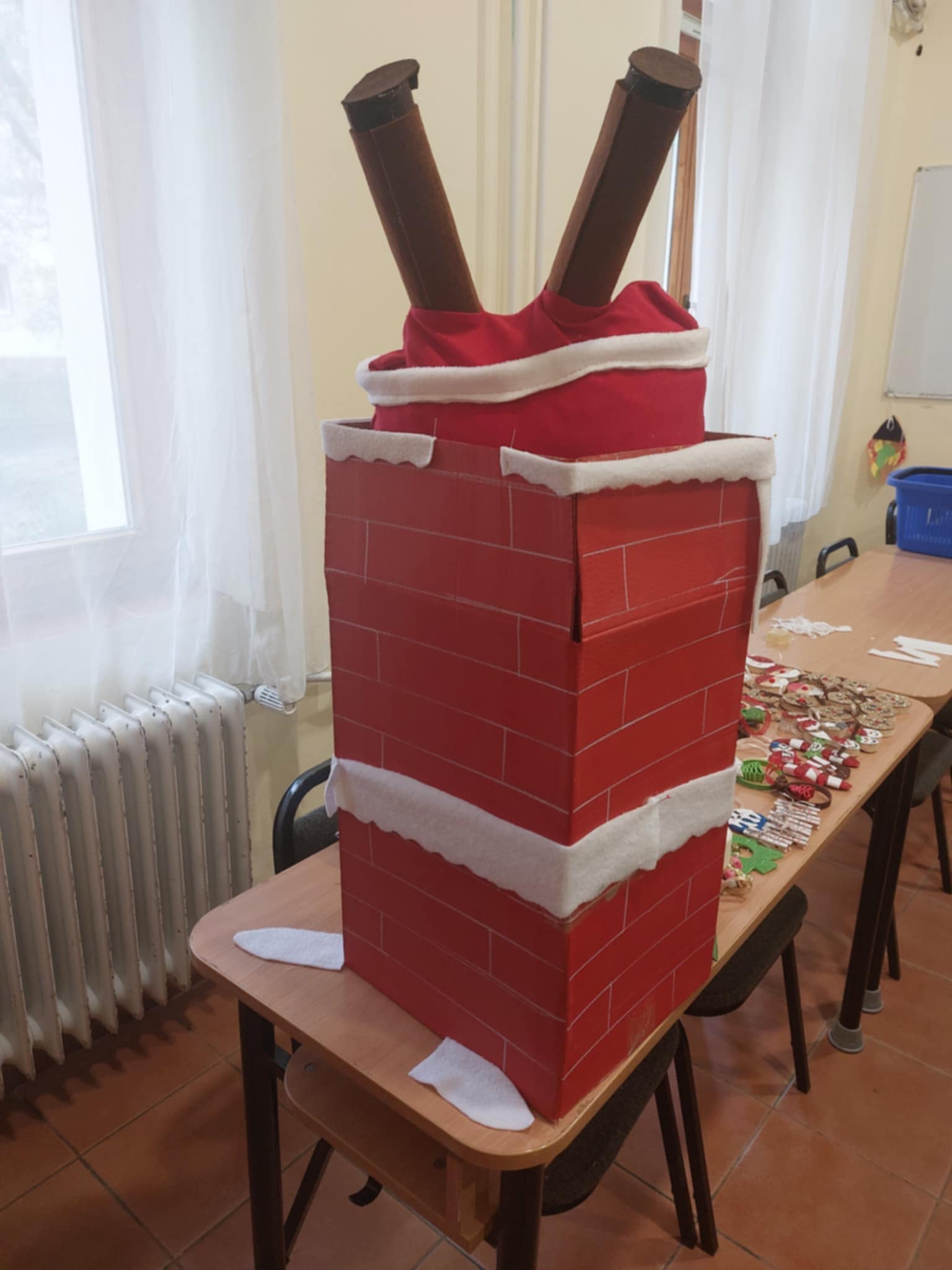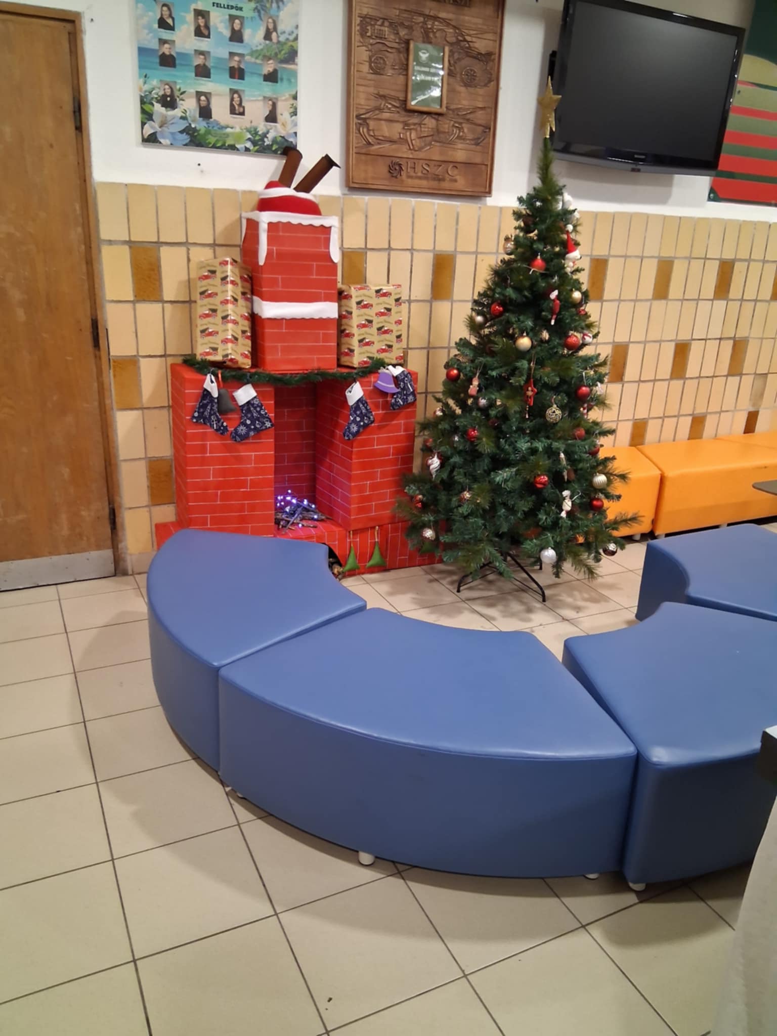 Az idei év különleges lett: a fiatalok egy hangulatos kandallót építettek, amelyet saját készítésű, apró kézműves díszekkel varázsoltak teljessé. 🎄✨