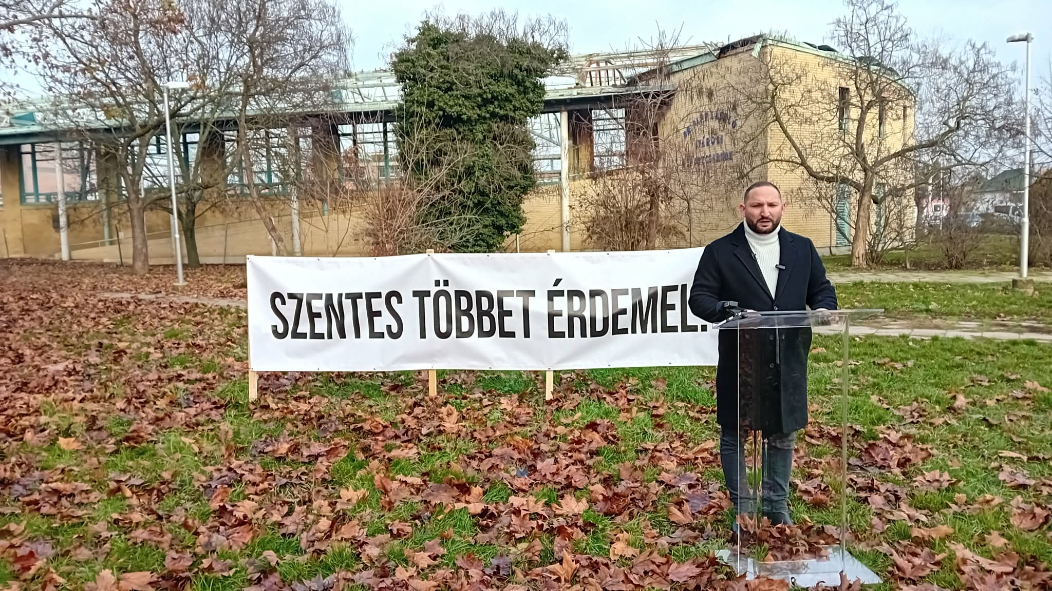 A Dr. Papp László Városi Sportcsarnokban 2021. december 28-án ütött ki tűz, melyet csak öt nap alatt sikerült véglegesen eloltani – idézte fel ma délelőtti sajtótájékoztatóján Varga Ferenc országgyűlési képviselő a négy évvel ezelőtti tragikus esetet, melyre csupán egy torzó emlékeztet a városközpontban. A leégett létesítmény maradványainál a Szentes többet érdemel! feliratú molinó előtt Varga Ferenc a kormányt a korábbi ígéreteikkel szembesítette.