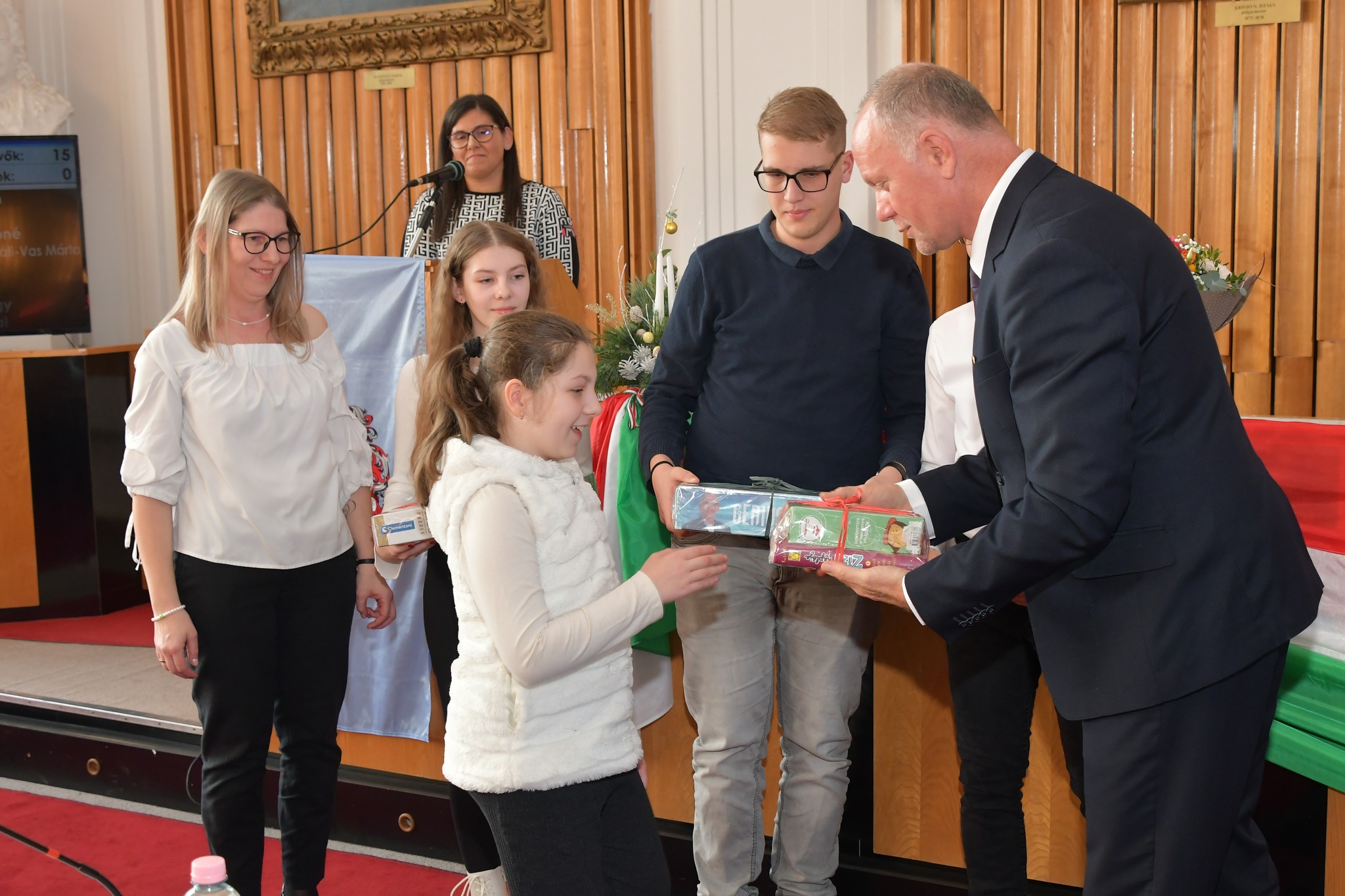 A méltatás végén Szabó Zoltán Ferenc polgármester adta át az elismerést Nagy Mihály és családja részére. A díjazottaknak a város vezetése és a képviselő-testület nevében is gratuláltak.