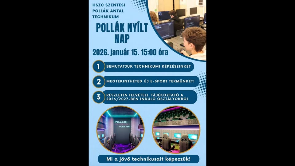 Második Nyílt Napunkon az érdeklődő diákok bepillanthatnak új E-sport termünkbe 2026. január 15-én, csütörtökön 15:00 órakor (Regisztráció 14:30-tól!)
