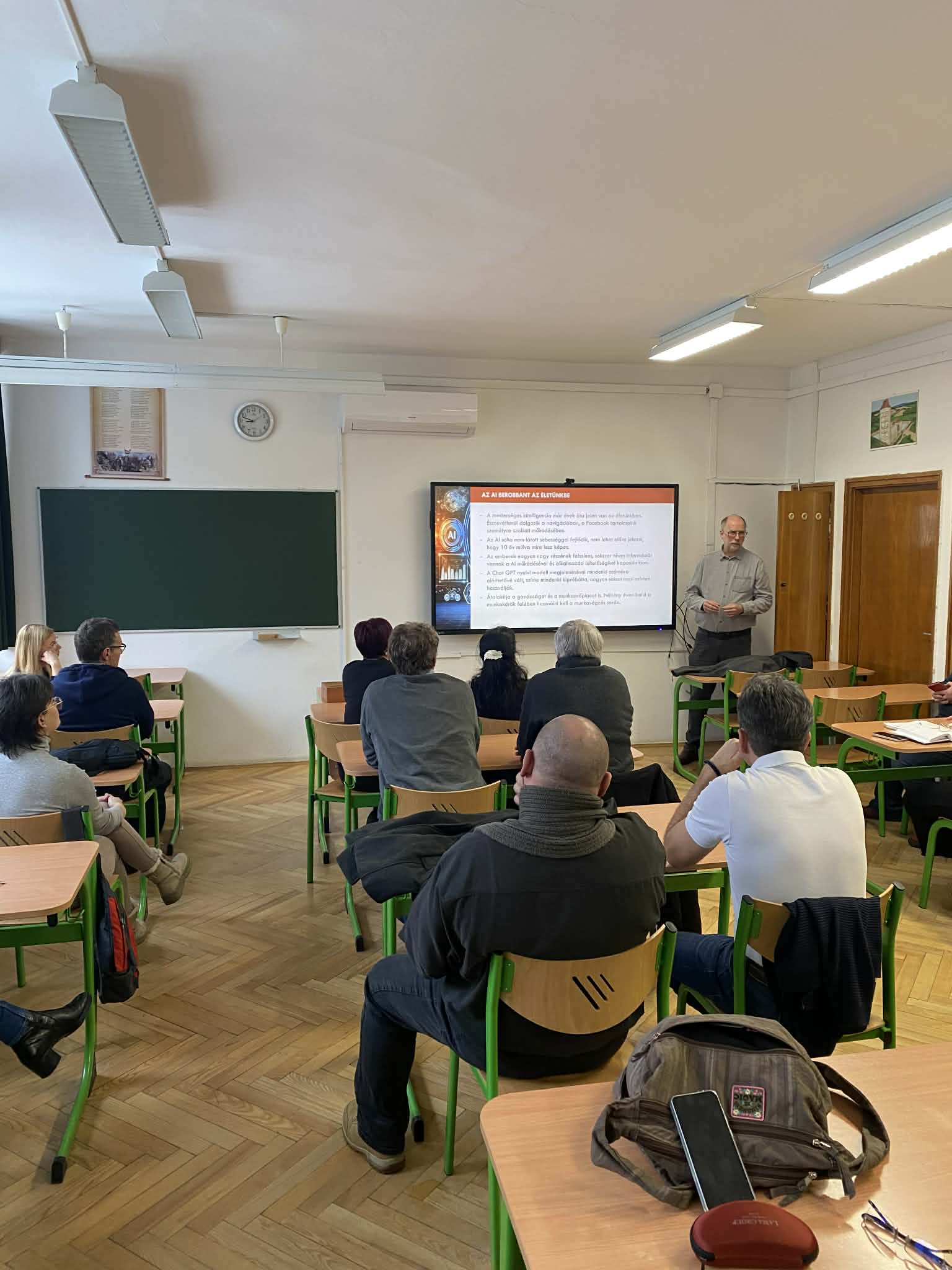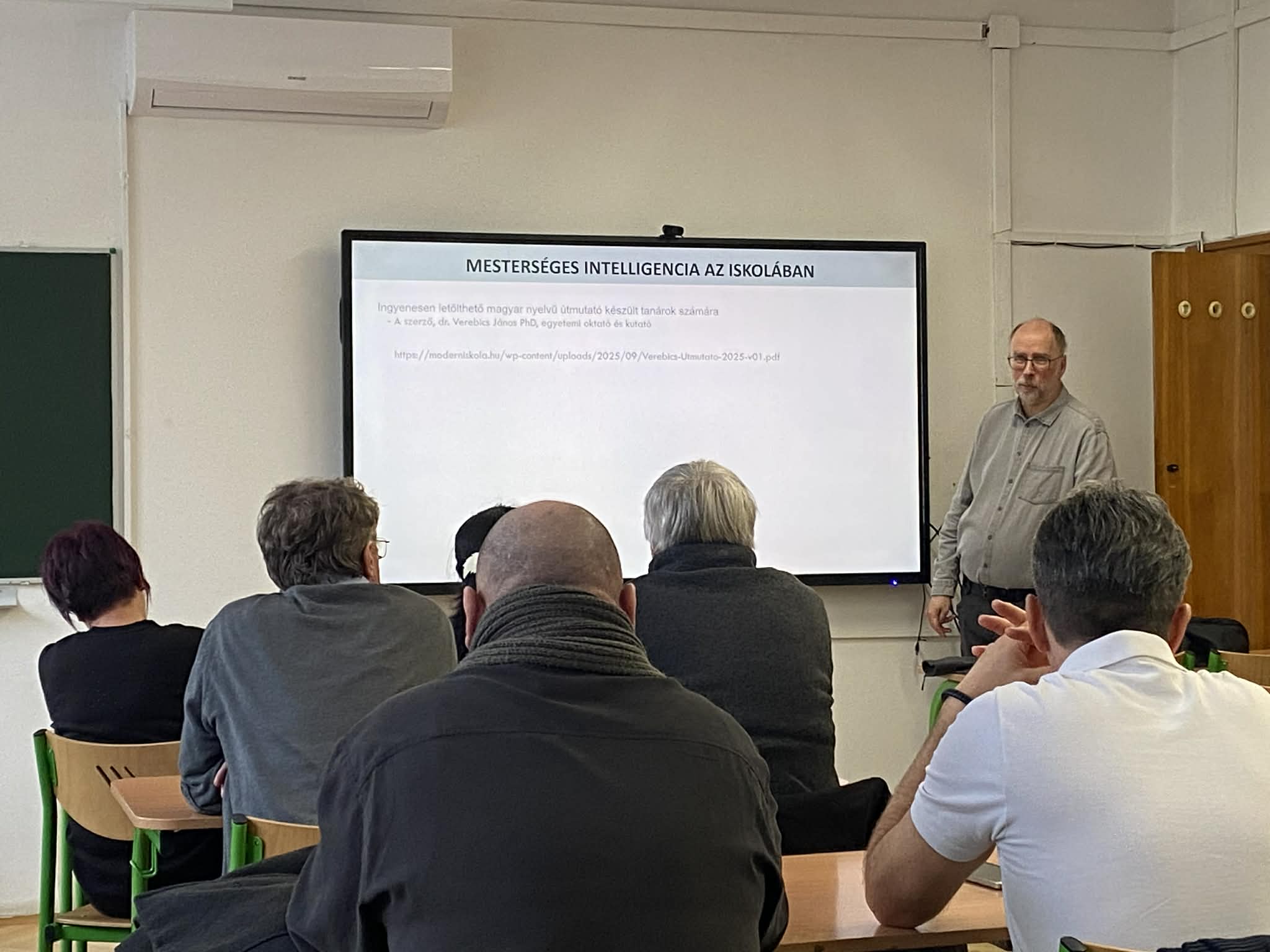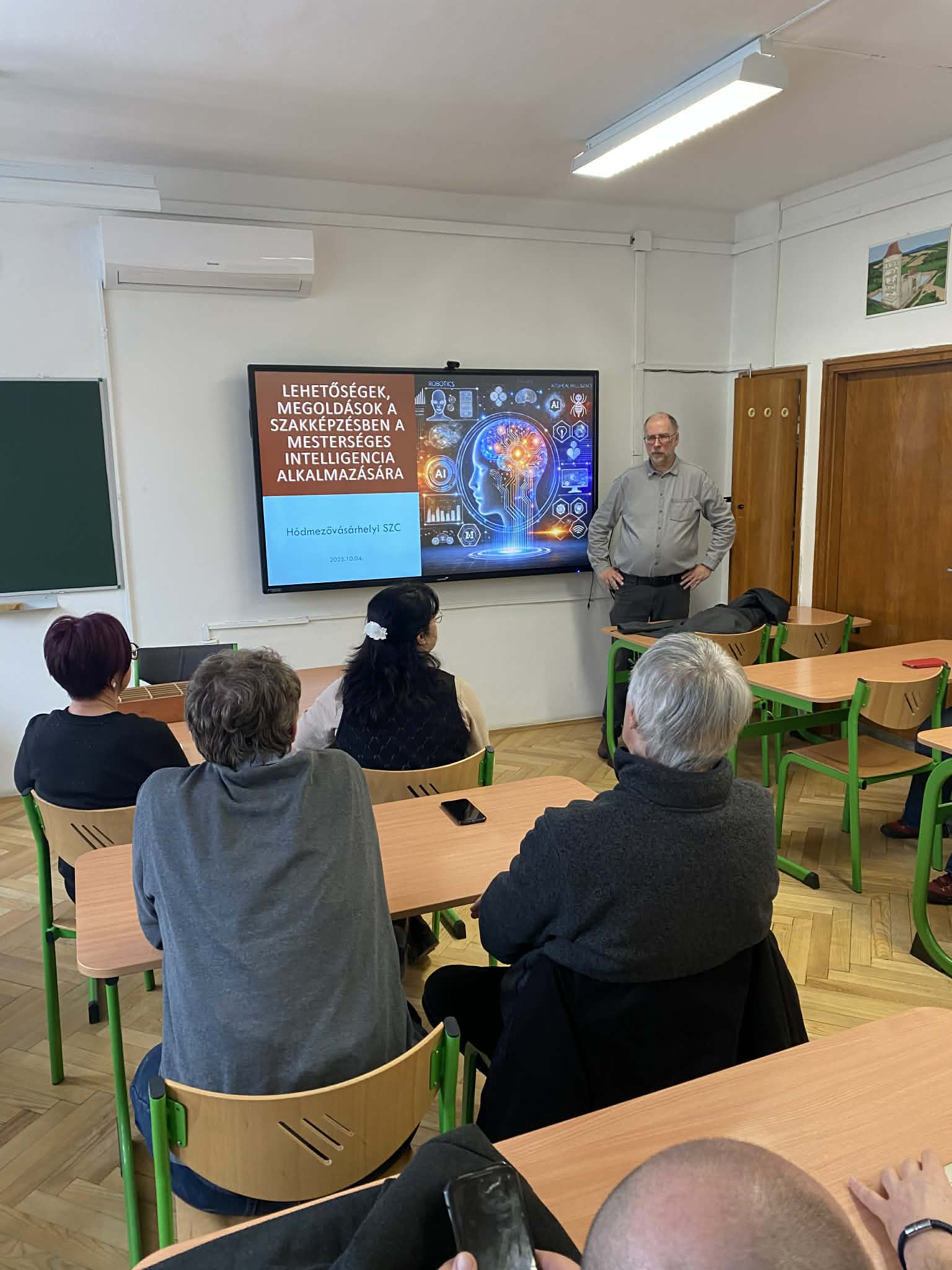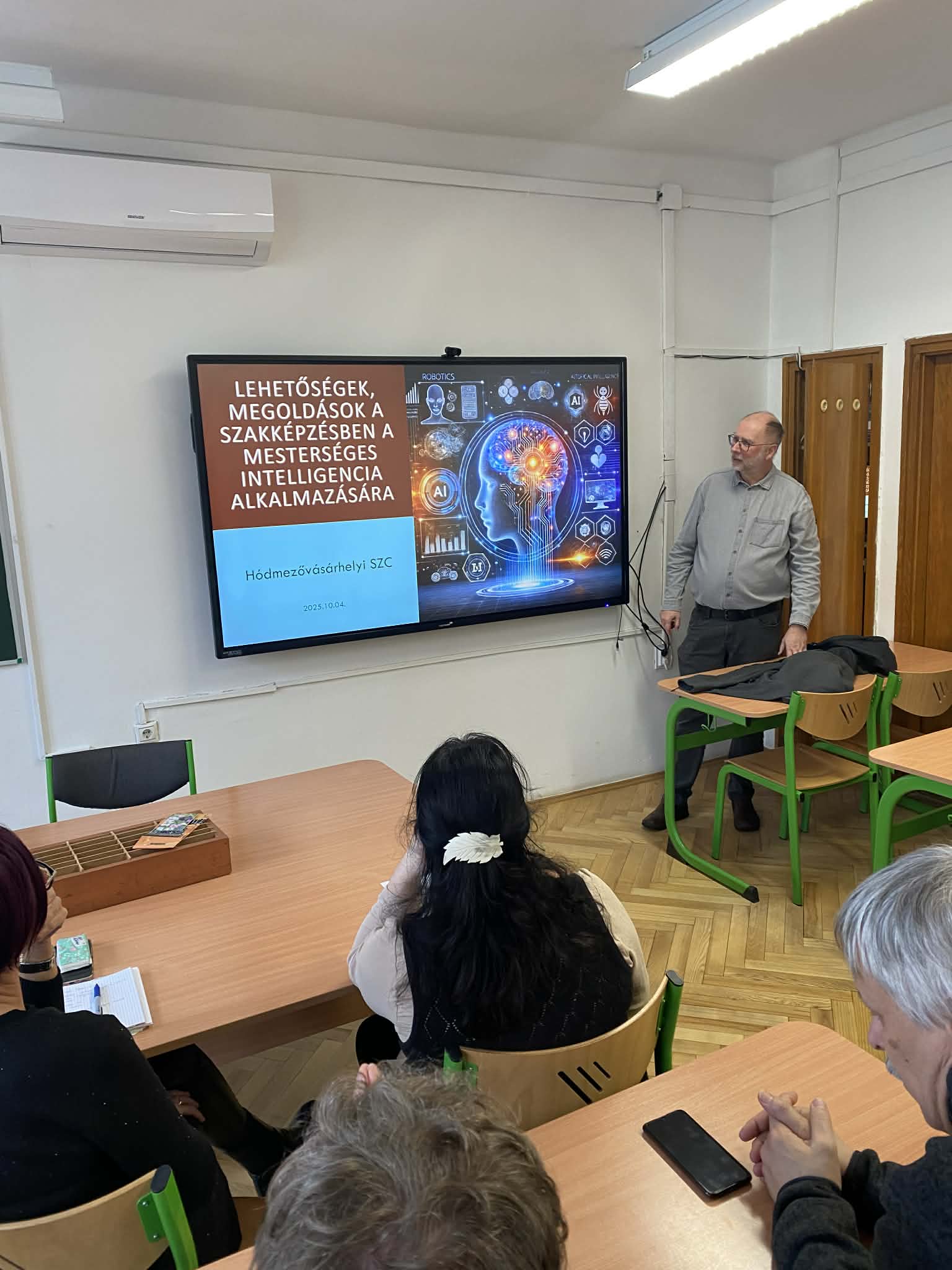 Ma iskolánkban köszönthettük Tornyi-Molnár Zoltánt, a Hódmezővásárhelyi Szakképzési Centrum főigazgató-helyettesét. A látogatás célja egy rendkívül aktuális téma áttekintése volt: „Lehetőségek, megoldások a szakképzésben a mesterséges intelligencia alkalmazására.”