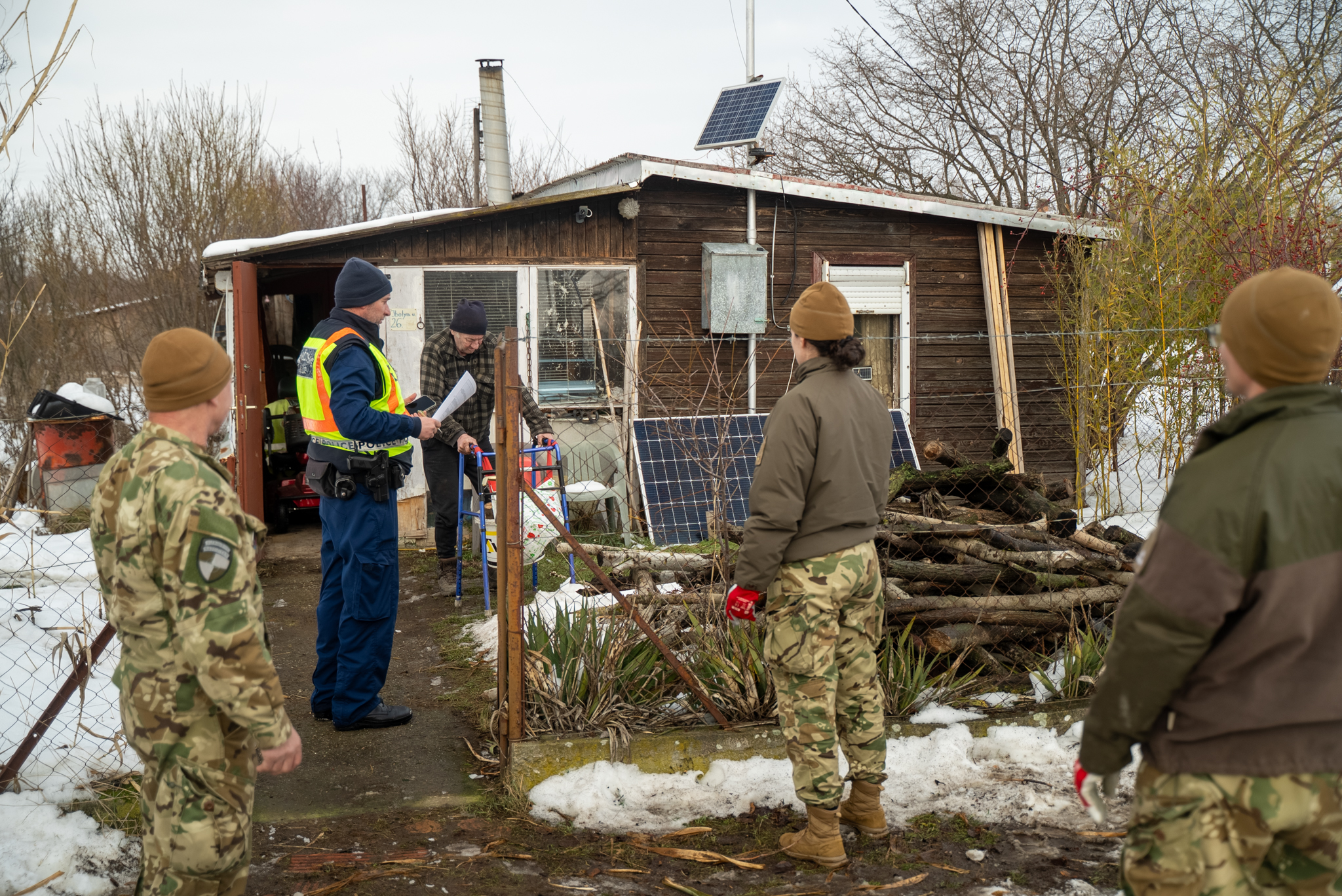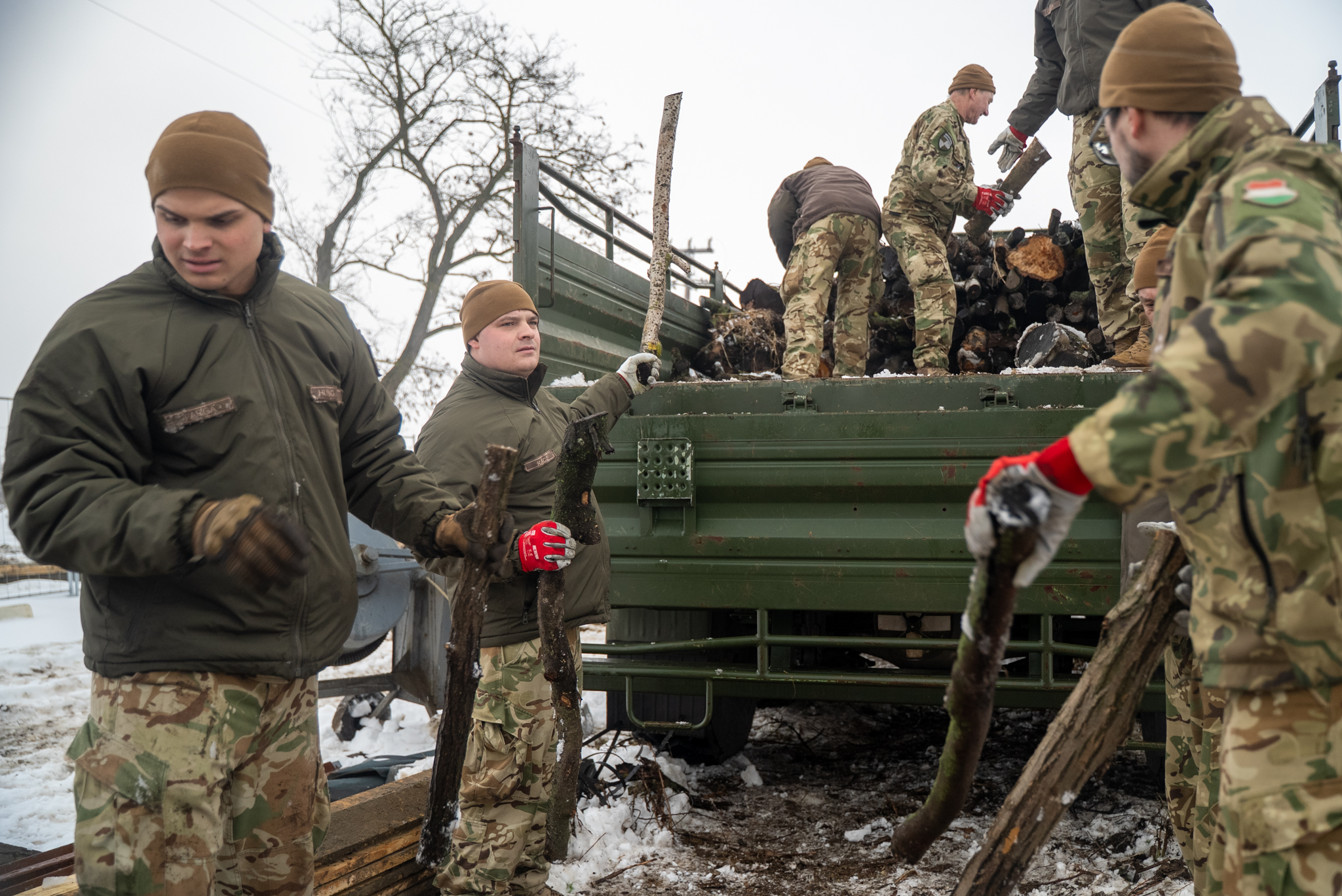 Katonáink több helyszínen a tüzelő feldolgozásában is segítettek, kisebb darabokra hasogatták a farönköket.