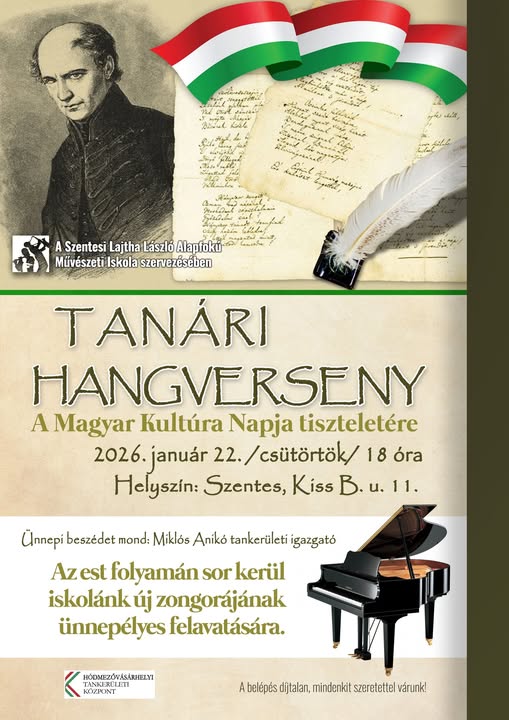 🔹18.00 Tanári hangverseny: A Magyar Kultúra Napja tiszteletére