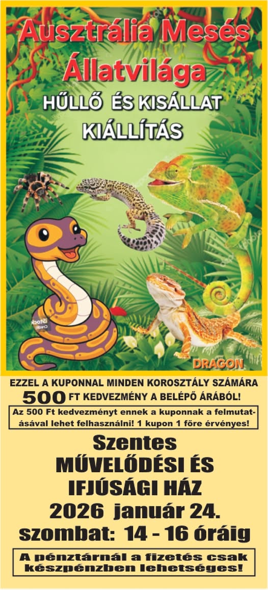 🔹14.00 Ausztrália mesés állatvilága: hüllő és kisállat kiállítás