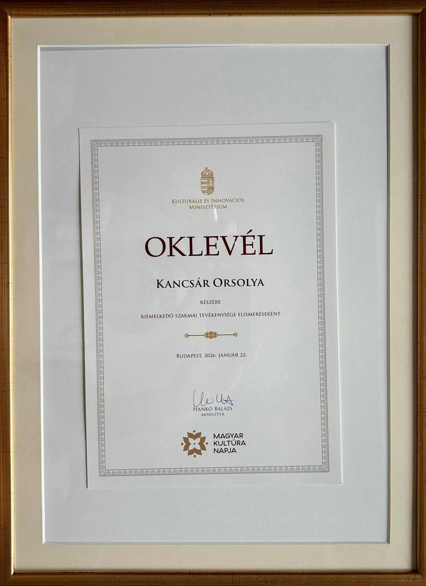 Szentes városa szívből gratulál Kancsár Orsolyának, a Tóth József Színház és Vigadó, valamint a Szegedi Pinceszínház vezetőjének, a magyar kultúra napja alkalmából átvett szakmai elismeréshez.