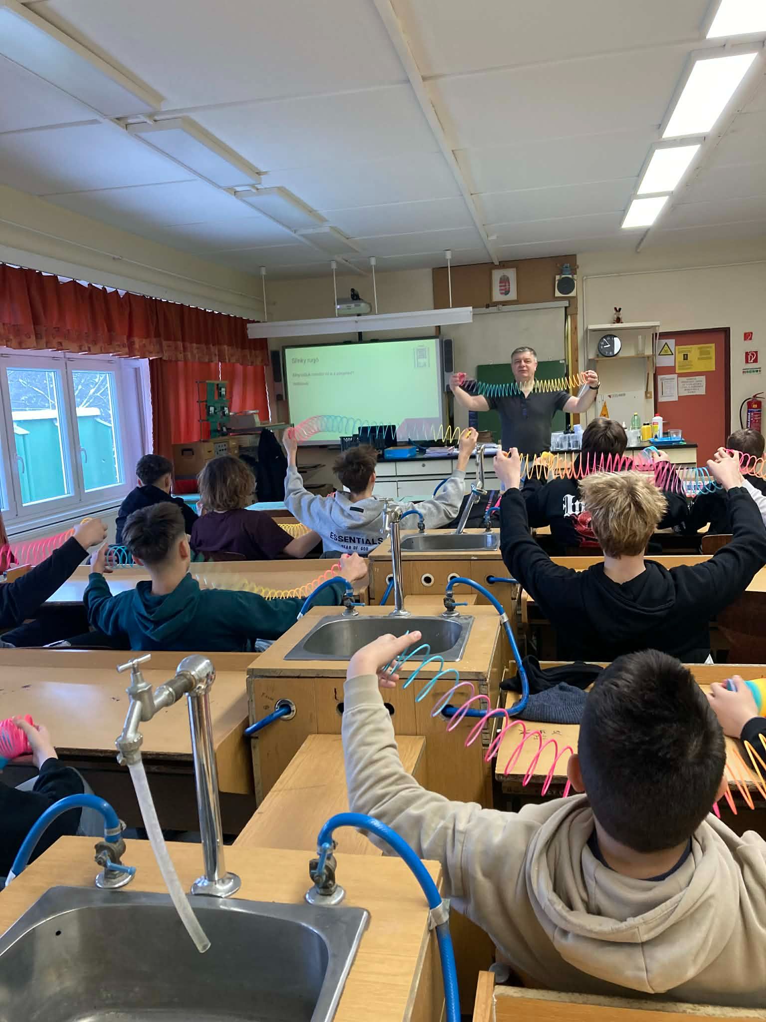 Vigh Attila, iskolánk fizika szakos oktatója sikerrel pályázott az UniverZoom projekt keretében, így ősszel saját diákjaival földi környezetben megismételhette Kapu Tibor űrben végzett kísérleteit. A projekt folytatásaként január 13-án a Deák Ferenc Általános Iskolában, január 15-én a Koszta József Általános iskolában tartott rendhagyó fizikaórát, ahol a képek tanúsága szerint is élmény volt a tanulás.