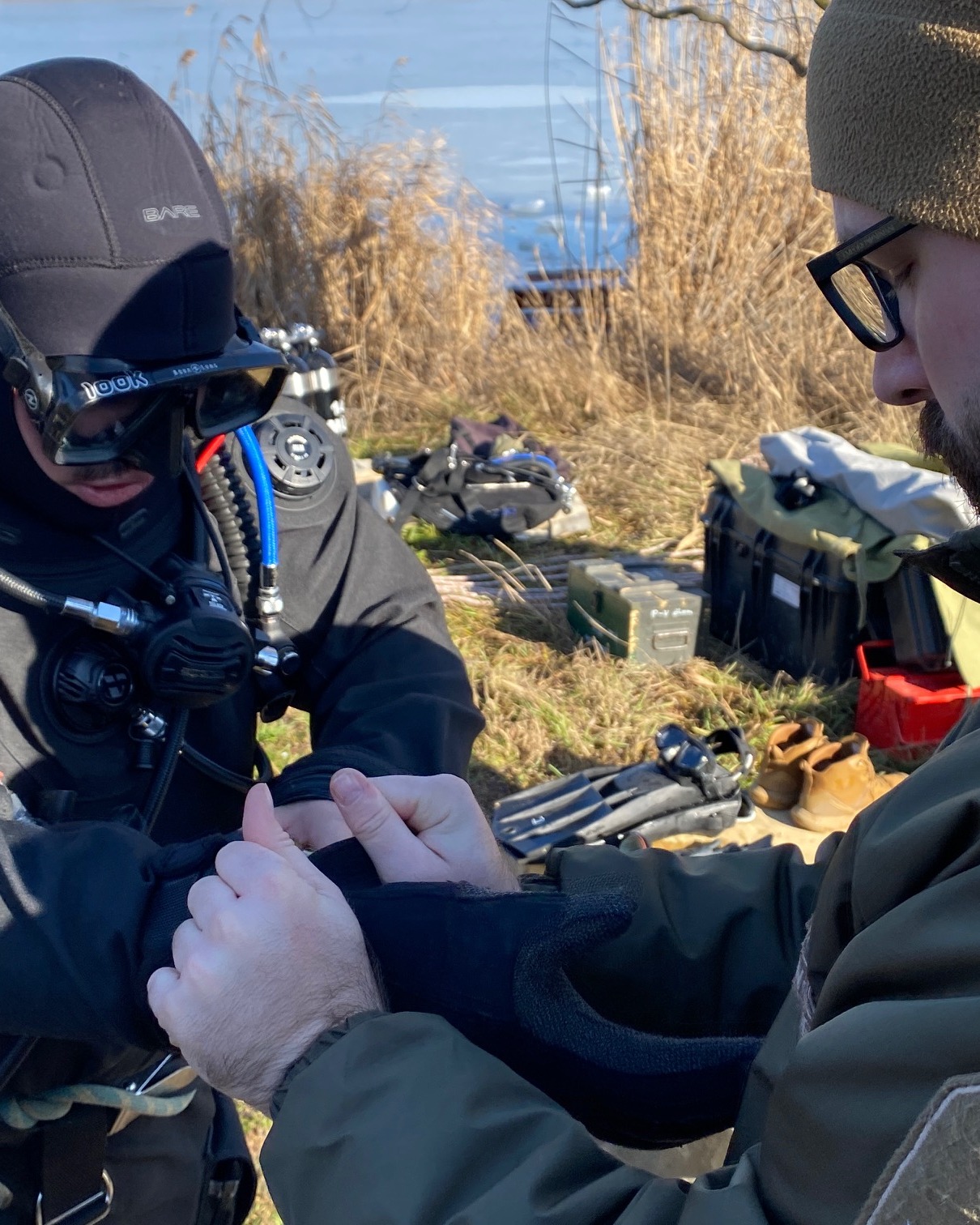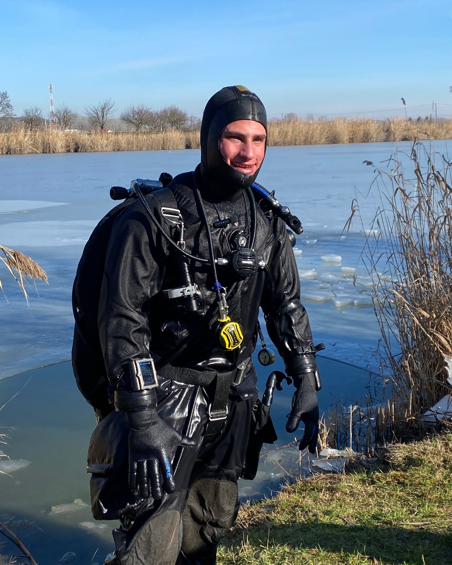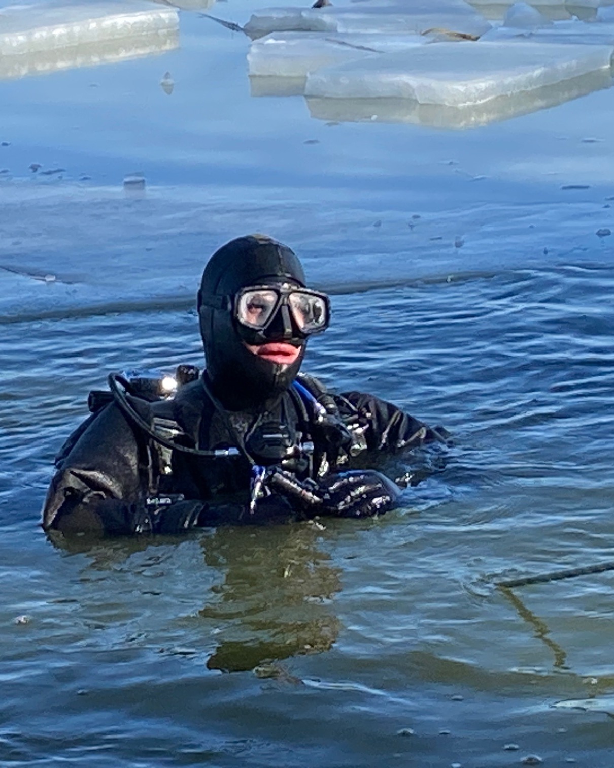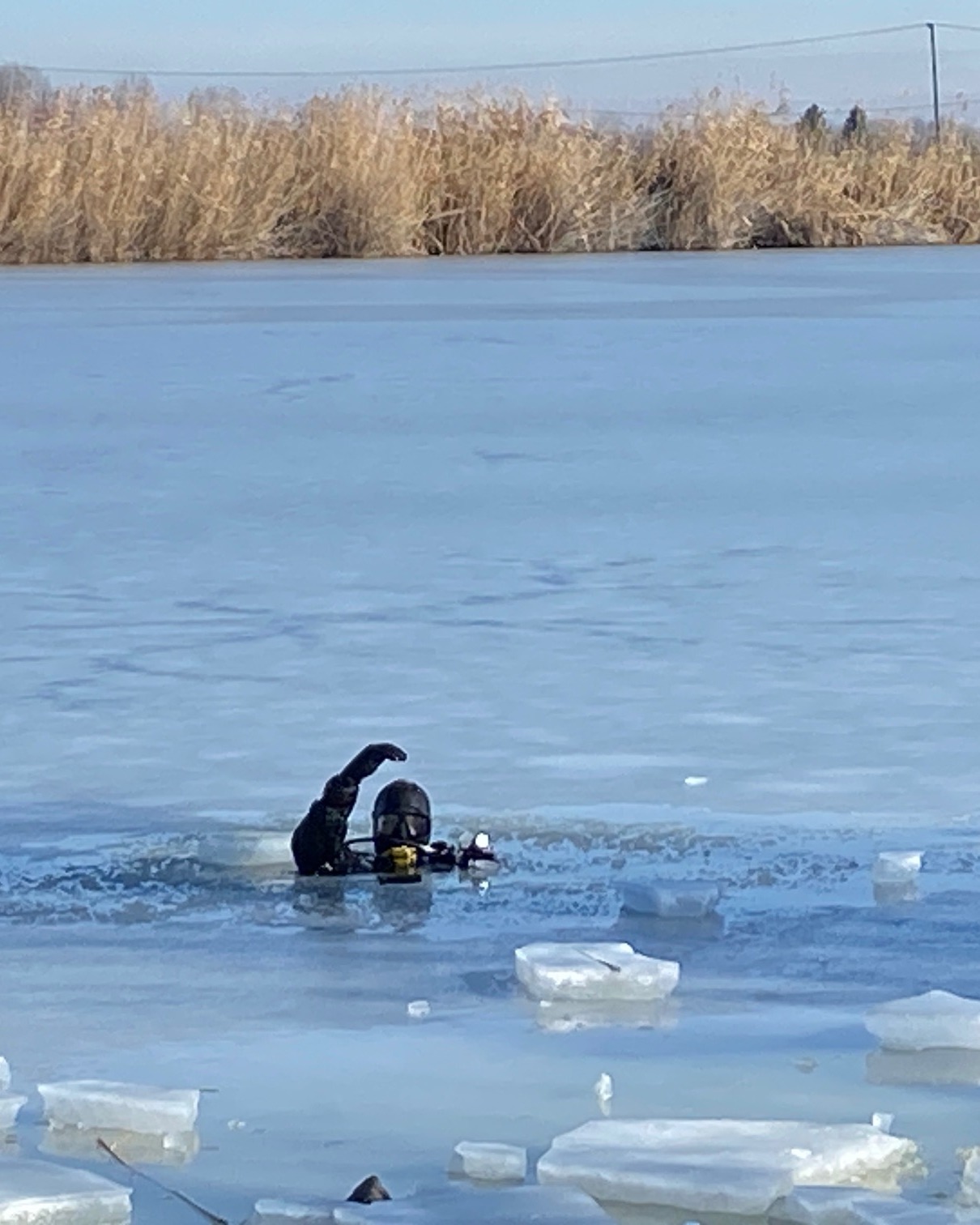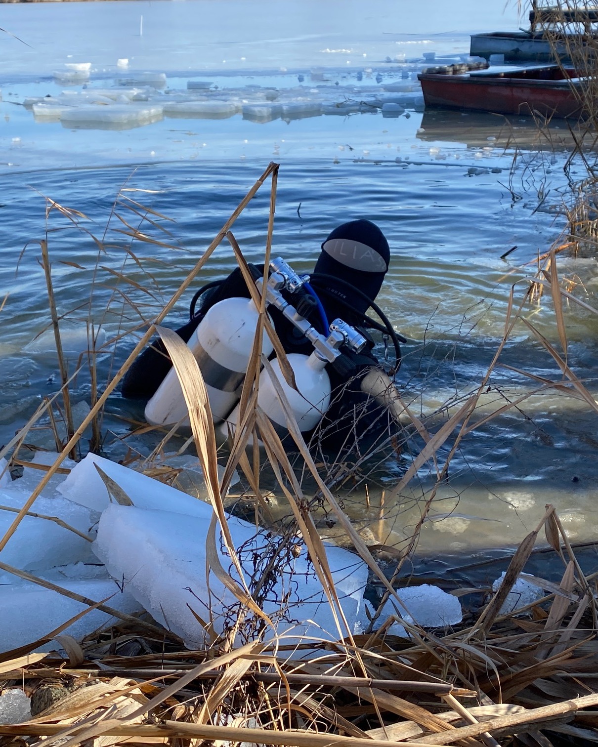 Műszaki búváraink a Holt-Tiszánál gyakorolták a jeges merülést….